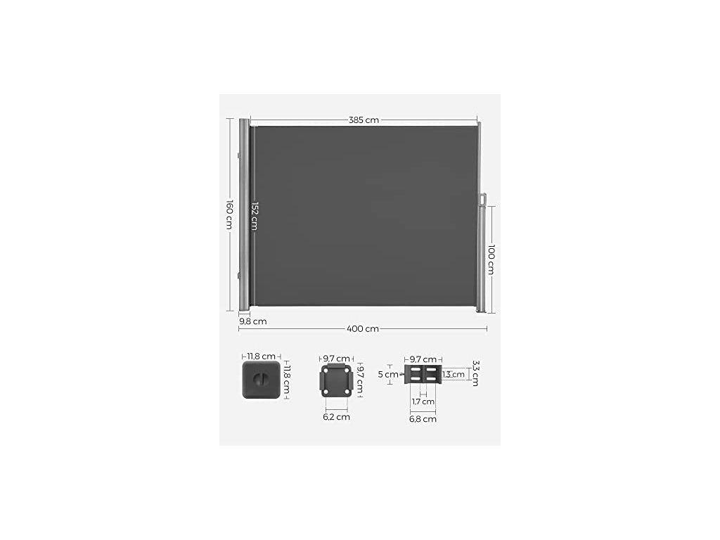 Boční markýza, 400 x 160 cm, kouřově šedá