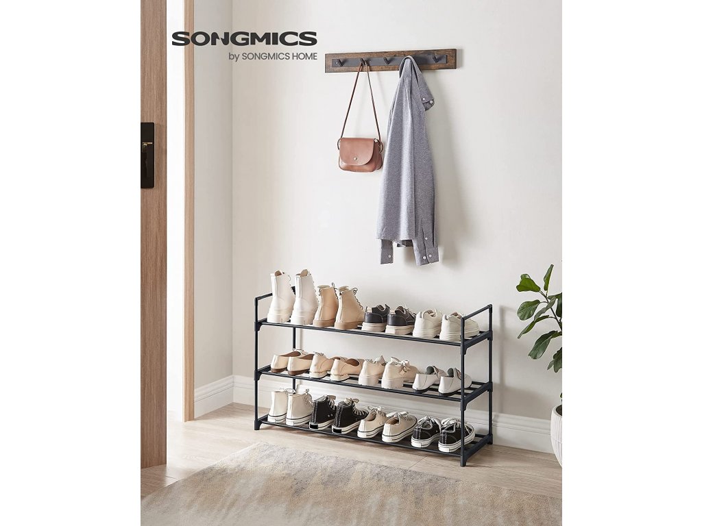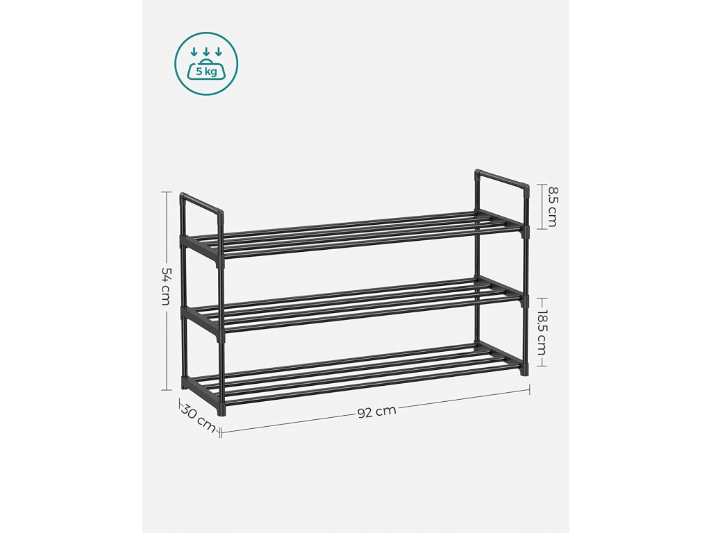 Botník, 3 patra, 92 x 30 x 54 cm, černý