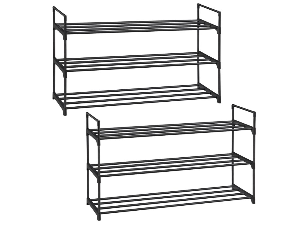 Botník, 2 kusy, 3 patra, 92 x 30 x 54 cm, černý