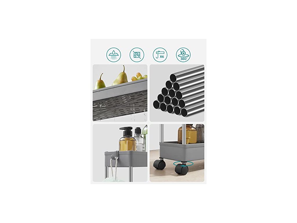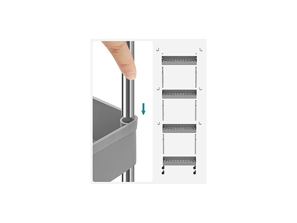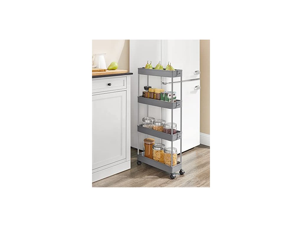 Už nebudete muset při vaření tisíckrát otevírat a zavírat dvířka. Díky 4 univerzálním kolečkům s kovovými tyčemi, které se hladce posouvají, můžete skladovací vozík přemístit kamkoli potřebujete.