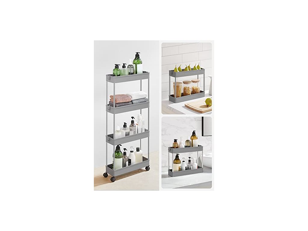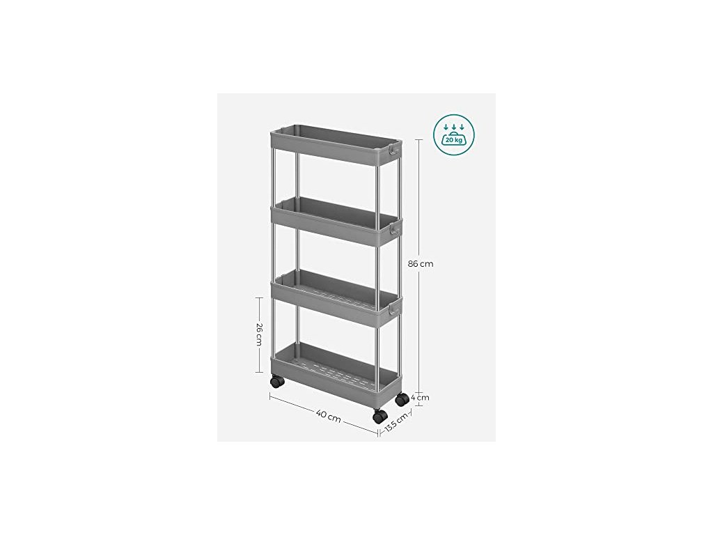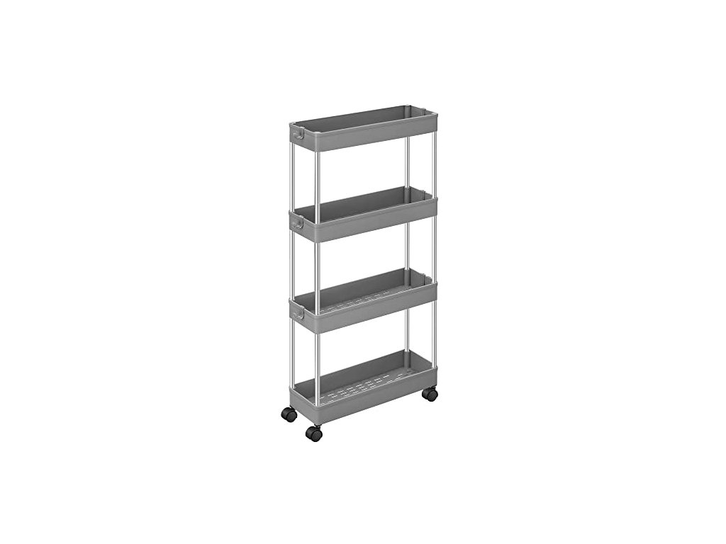 Pojízdný úložný regál, 4 patra, 40 x 13,5 x 86 cm, šedý