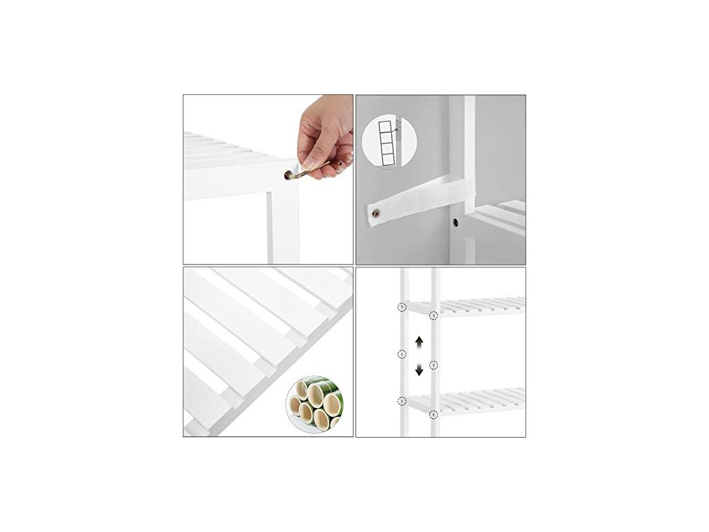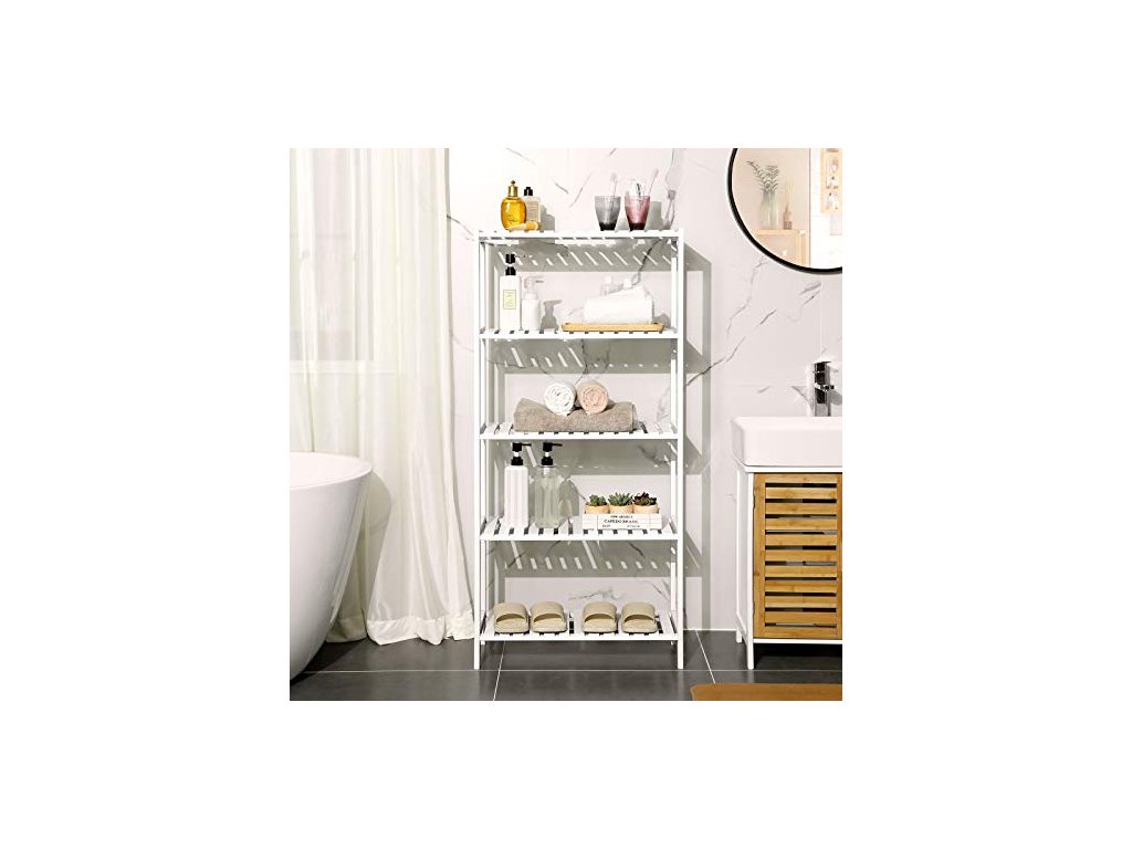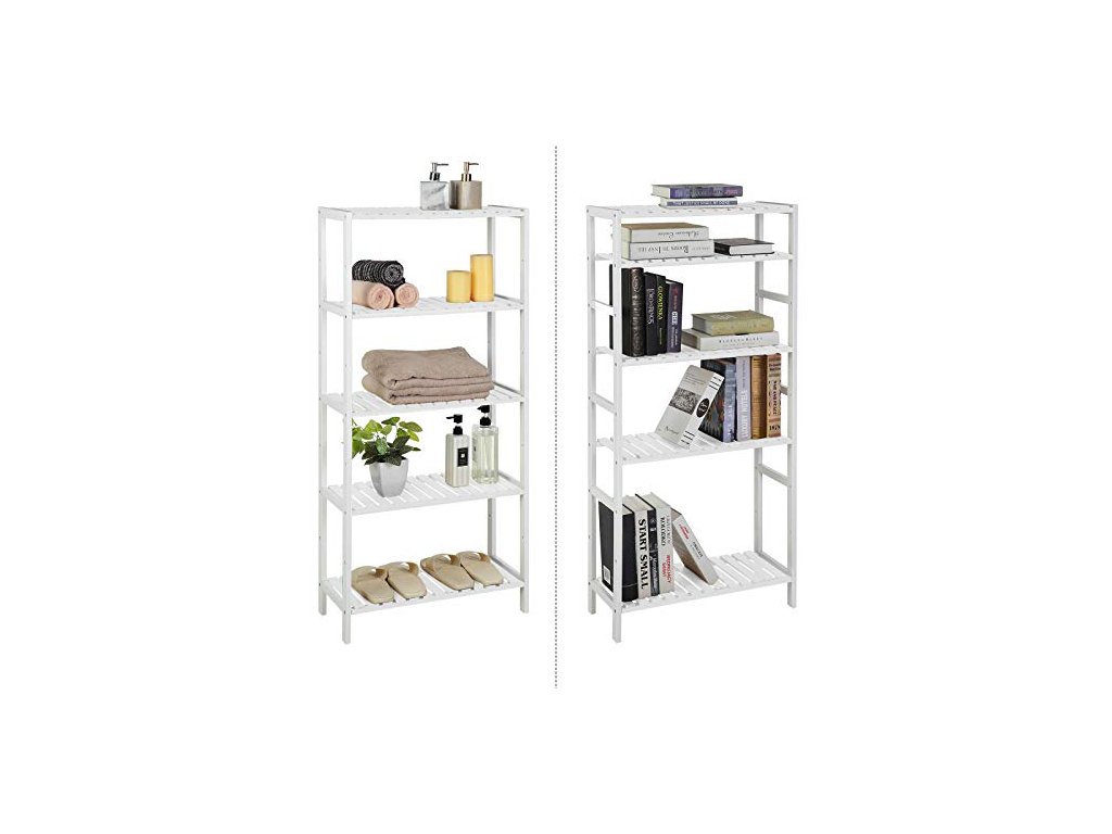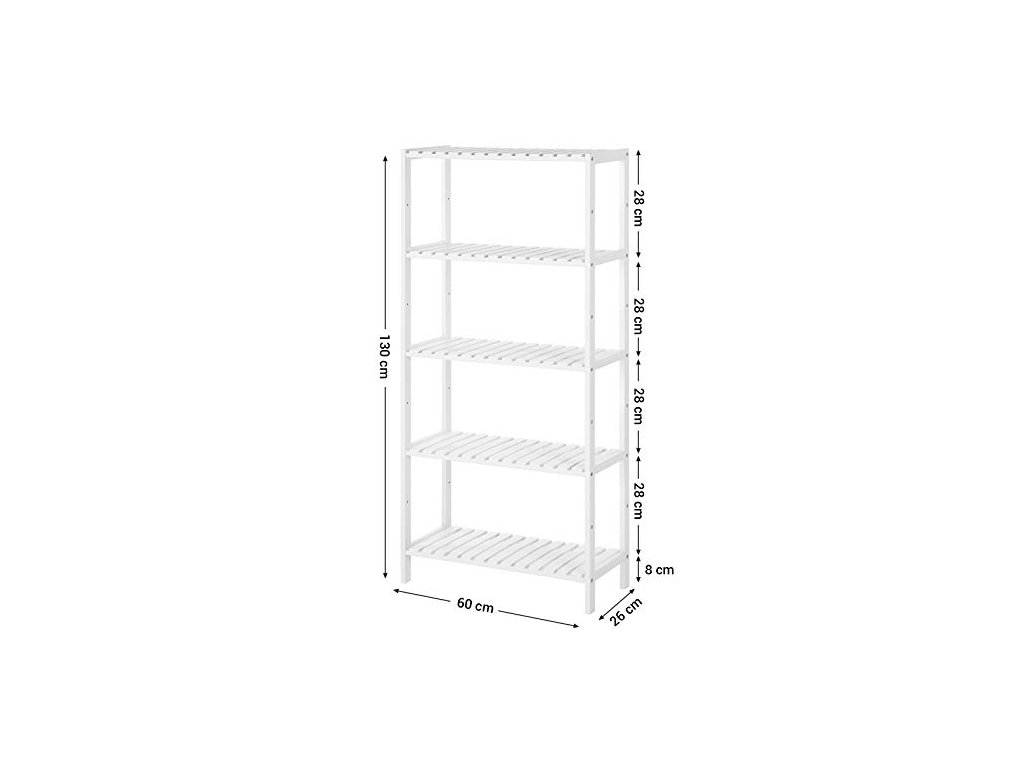 Bambusový regál, 5 pater, 60 x 26 x 130 cm, bílý