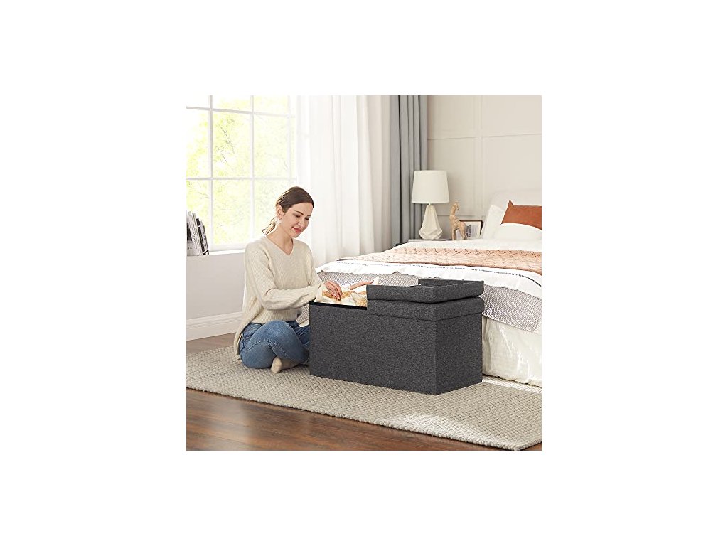 Úložná truhla o objemu 80 l poskytuje dostatek prostoru pro uložení polštářů, přikrývek, oblečení, časopisů atd. Nosnost 300 kg.