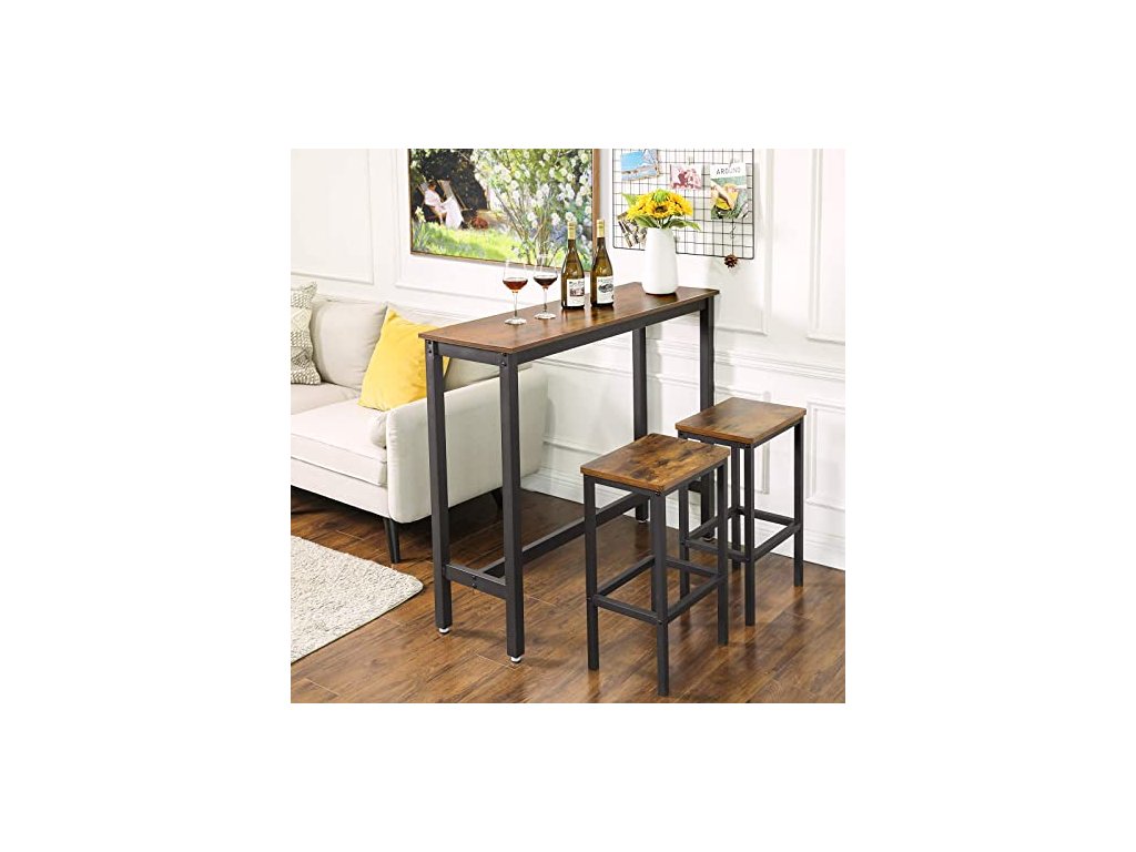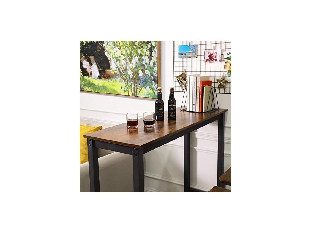 Tento úzký barový stůl je hluboký pouhých 40 cm, takže je ideální pro malé jídelní prostory a zároveň nabízí velkou plochu pro talíře, šálky a příbory. Robustní kovový rám, snadná montáž