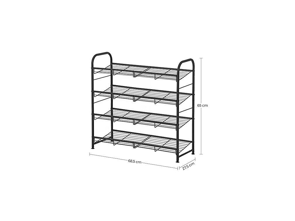 Botník, 4 patra, 68,5 x 27,5 x 65 cm, černý