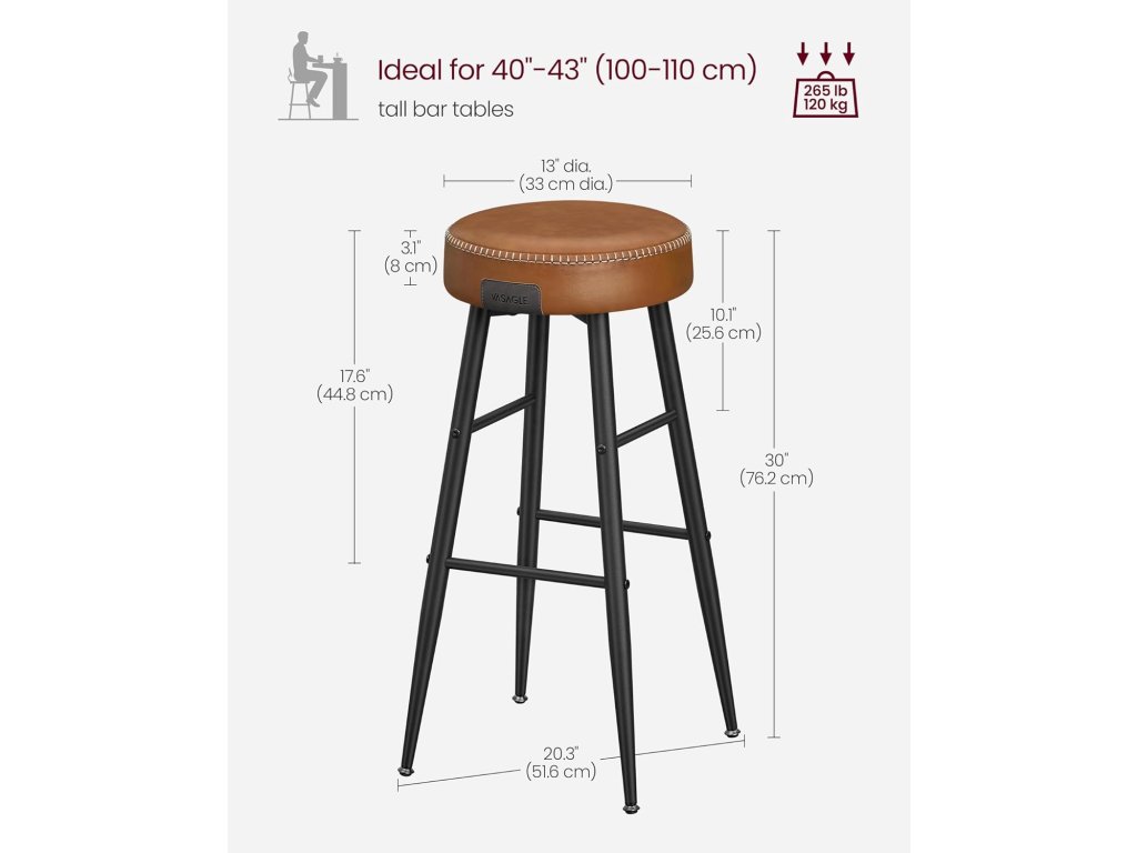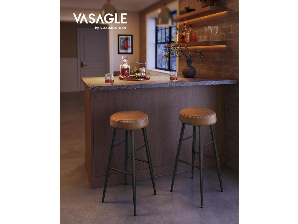 Barová židle, 2 kusy, 51,6 x 51,6 x 76,2 cm, karamelově hnědá