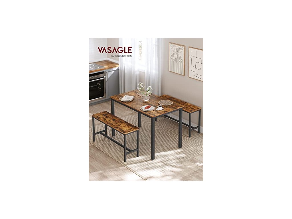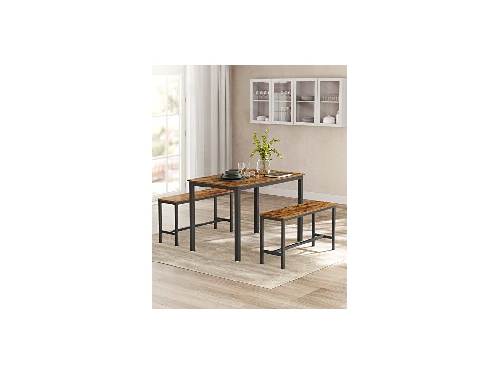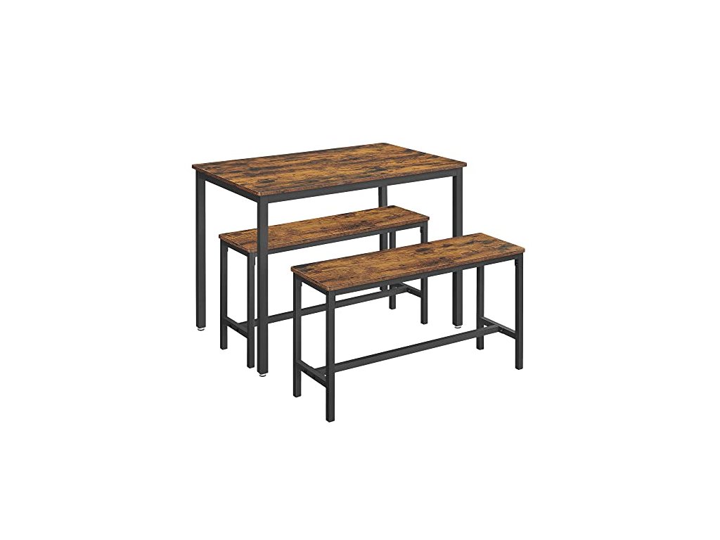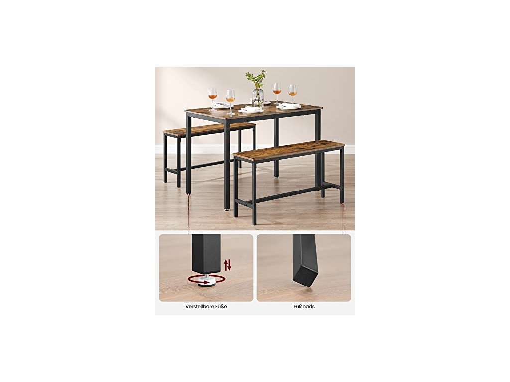 Jídelní set, stůl a 2 lavice, pro 4 osoby, rustikálně hnědý a černý