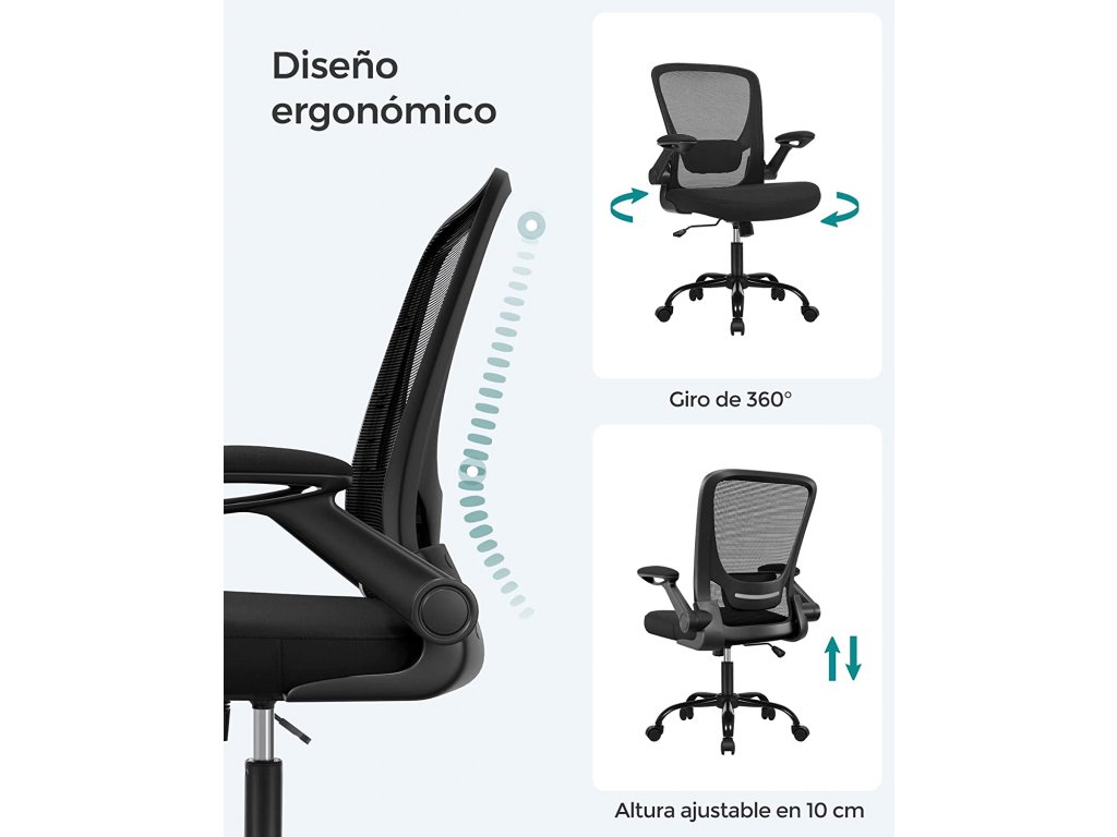 Výška sedáku a bederní opěrky jsou nastavitelné; područky jsou sklopné, židli můžete při používání zasunout pod stůl; můžete také aktivovat funkci oscilace (90°-105°) a relaxovat.