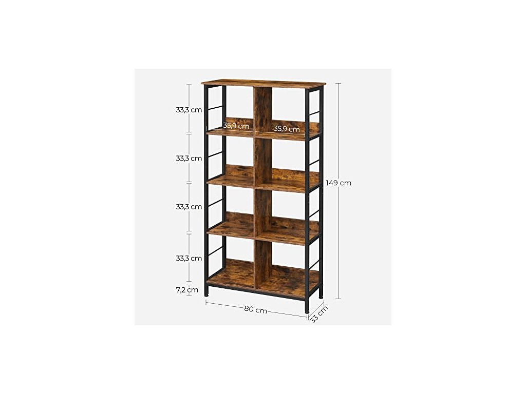 Rustikální hnědé panely, černá ocel. Tento industriální úložný regál skutečně vnese do vašeho interiéru nadčasové kouzlo! Regál je vybaven zadními panely a nastavitelnými nožičkami pro větší stabilitu! Tento úložný regál s prémiovou dřevotřískou a pevným ocelovým rámem vás bude doprovázet při čtení vašich oblíbených knih znovu a znovu! Ať už jde o velké romány nebo sérii komiksů, unese až 50 kg.