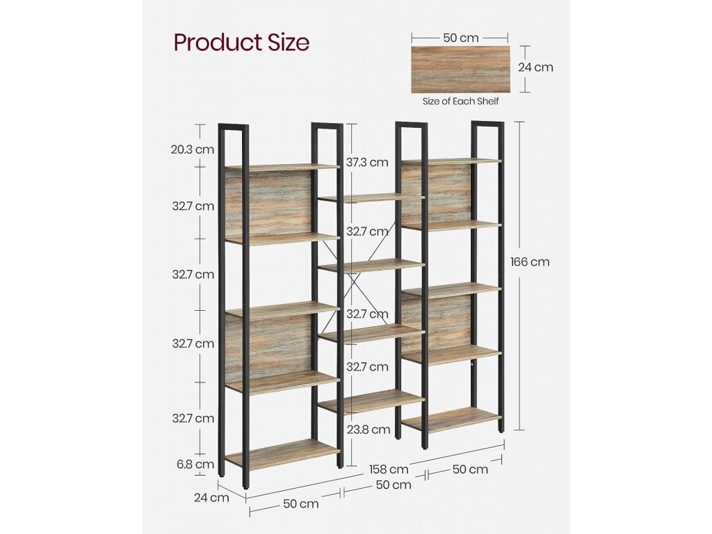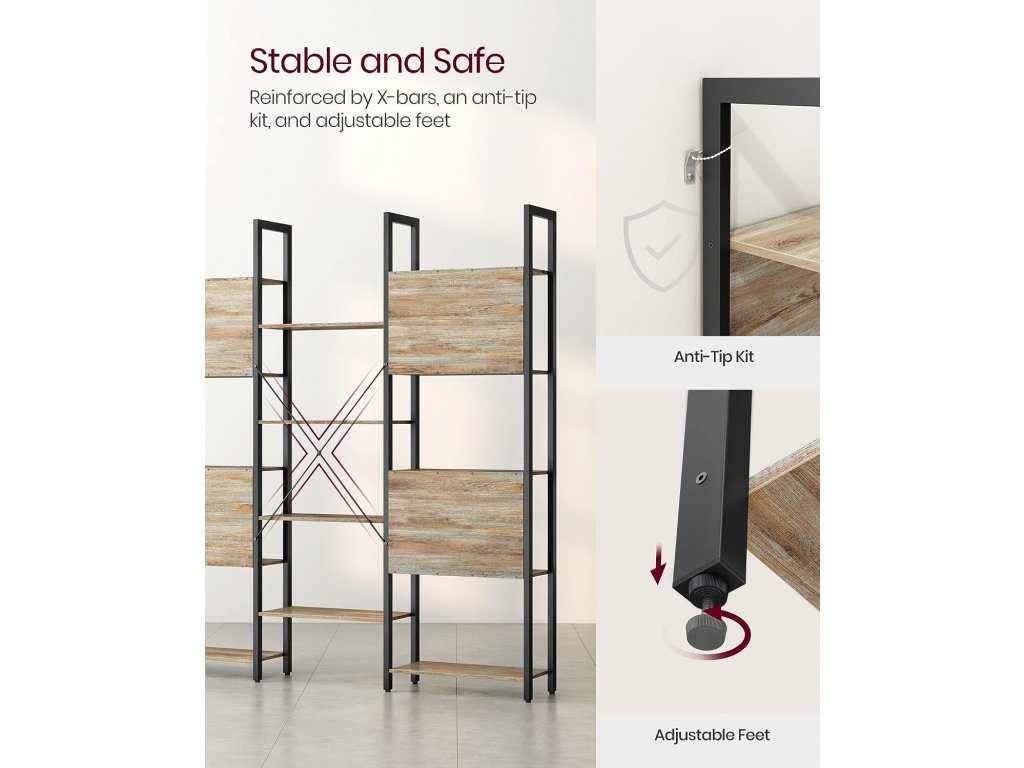 Tento regál se 14 policemi nabízí spoustu místa pro elegantní vystavení drobností, fotografií, suvenýrů z dovolené a mnoho dalšího. Pevná ocel a odolná dřevotřísková deska tvoří stabilní konstrukci, kterou ještě více zpevňují tyče X na zadní straně. Regál unese až 10 kg na každou polici, celkem tedy 140 kg. Připevněné zadní desky na policích zajišťují, že se vaše předměty nepřevrhnou. Nastavitelné nožičky udržují regál ve vodorovné poloze a sada proti převrácení zabraňuje převrácení regálu, aby bylo prostředí bezpečnější. Umístěte tento regál do obývacího pokoje k vystavení dekorací a jiných předmětů, do kanceláře k uspořádání dokumentů, do ložnice na osobní věci nebo jen do skříně, abyste měli více místa na uspořádání svých věcí. Díky označeným dílům, jasnému návodu a přiloženému montážnímu nářadí je montáž tohoto regálu jednoduchá a snadná.