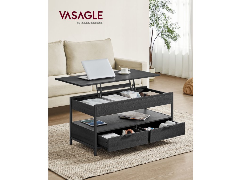 Snadno si můžete nastavit výšku desky stolu od 48 cm do 63 cm, což vám umožní najít ideální polohu pro práci, stolování nebo hraní her při lenošení na gauči. Zvyšte si pohodlí s tímto zvedacím konferenčním stolkem. Široká deska stolu a spodní police nabízejí otevřený úložný prostor, který vás vybízí k snadnému dosažení předmětů denní potřeby. 3 skryté přihrádky a 2 zásuvky uchovávají deky, časopisy a další drobnosti skryté a zároveň uspořádané. Díky kvalitním kovovým pantům a zesíleným příčkám se deska stolu tohoto stolu do obývacího pokoje pyšní plynulým zvedáním a ve zvednuté poloze unese až 20 kg. Tento zvedací konferenční stolek je vyroben z pevných dřevotřískových desek a ocelového rámu, je robustní a vyroben pro dlouhou životnost. Unese až 136 kg, což vám poskytne klid při každém použití. Černé nohy stolu a uhlově šedé panely tohoto konferenčního stolku vyzařují stylový industriální vzhled. Oživí váš obytný prostor vintage atmosférou a vylepší celkovou estetiku vašeho domova. Barva: Uhlově šedá, Inkoustově černá. Materiál: Ocel, Dřevotříska. Rozměry výrobku: 100 x 50 x 48-63 cm. Hmotnost produktu: 25,6 kg. Max. statické zatížení desky stolu ve zvednuté poloze: 20 kg. Celková max. statická nosnost: 136 kg