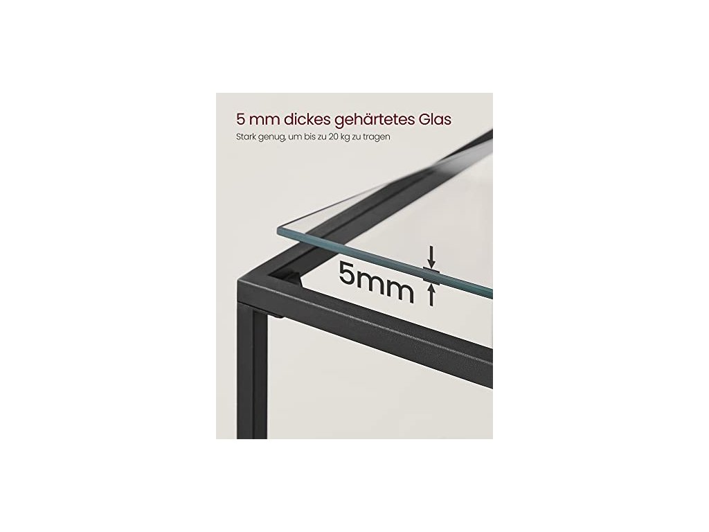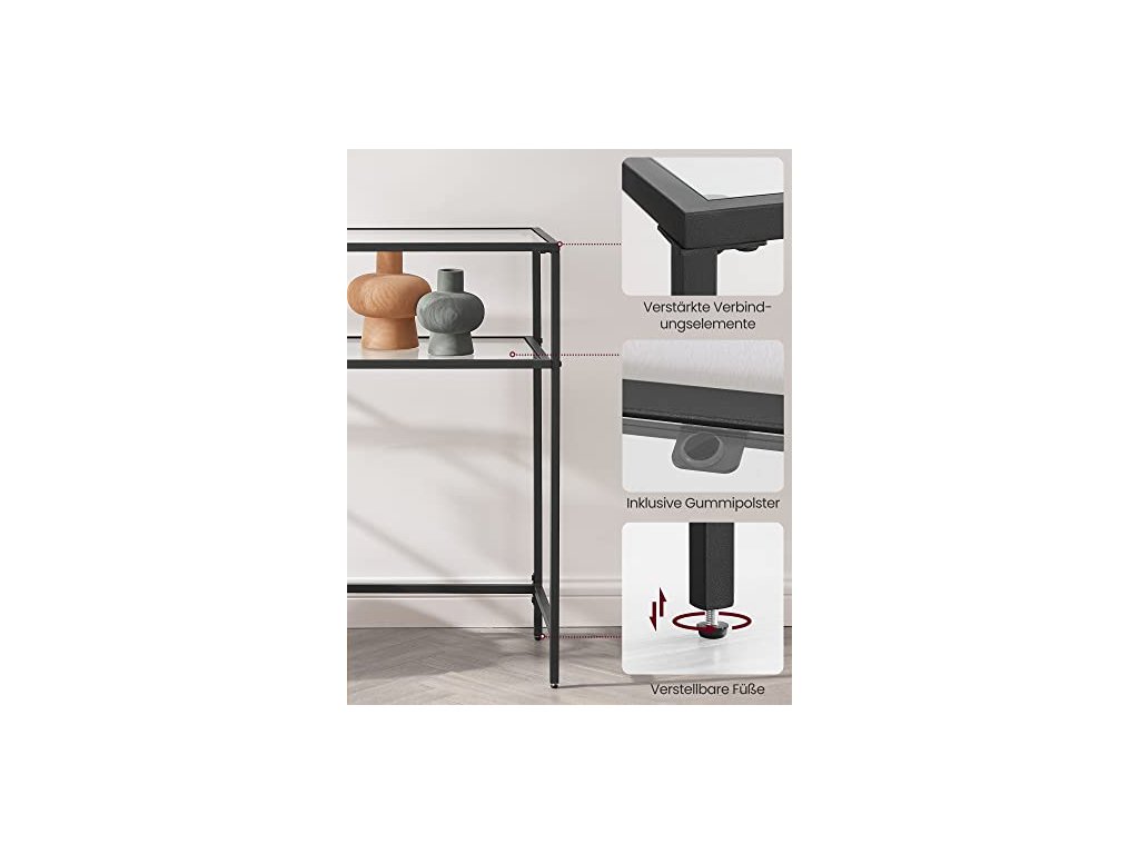 Co byste chtěli na tomto regálu vystavit? Suvenýry z vašich cest? Květiny v květináčích? Stačí je všechny postavit. Díky tvrzenému sklu a robustnímu ocelovému rámu bude každá police s nosností 20 kg pevně držet vaše oblíbené věci. Regál má nastavitelné nohy