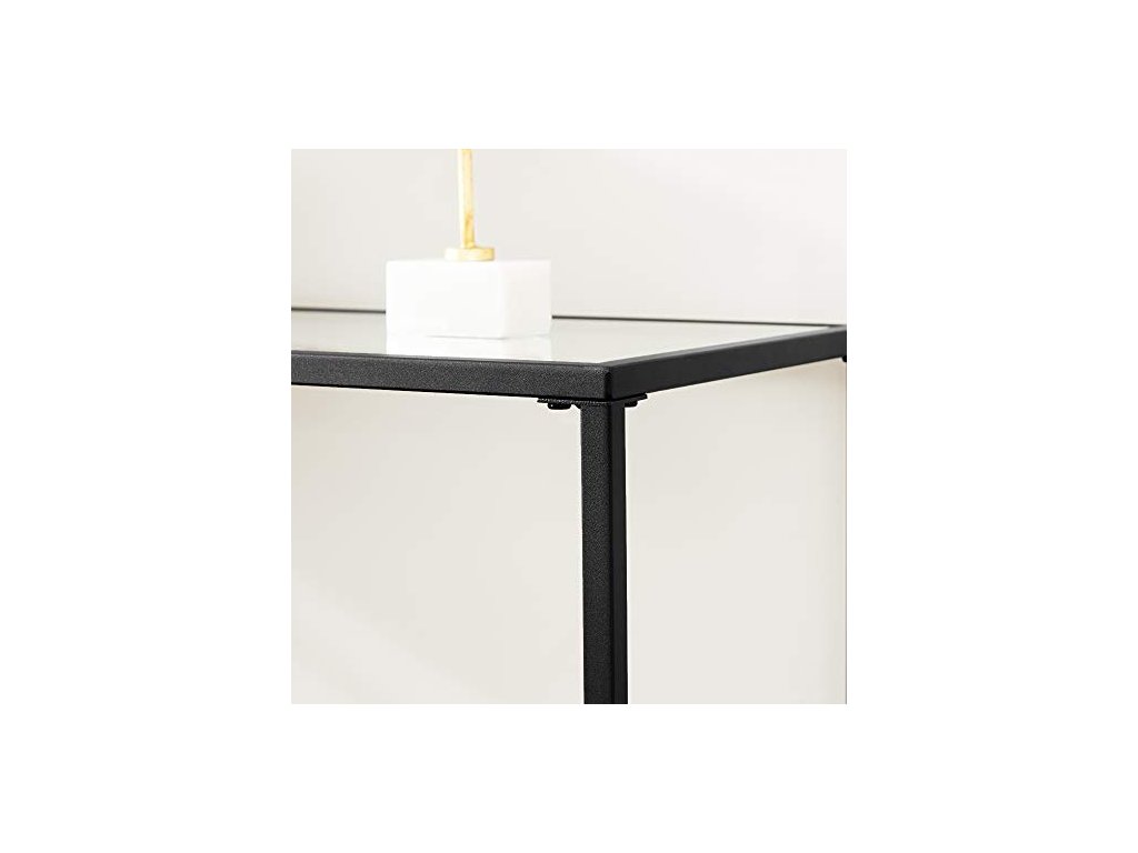 Na kovovém rámu tohoto konzolového stolku je umístěno 6 mm silné tvrzené sklo, které nabízí stabilní oporu až pro 30 kg rostlin, dekorací, knih nebo cenných rodinných památek. Nastavitelné nohy