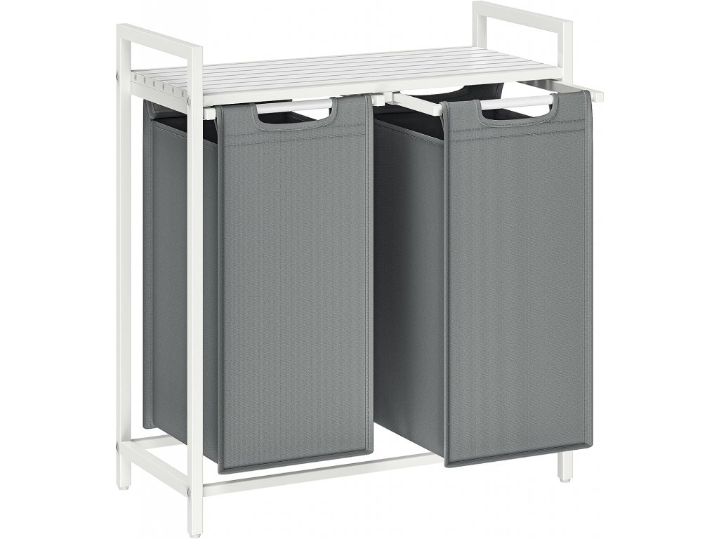 Dvoukomorový koš na prádlo s policí, 73 x 33 x 72 cm, 2 x 46 l, bílý a světle šedý