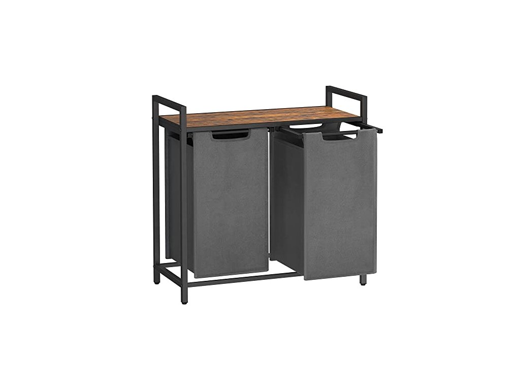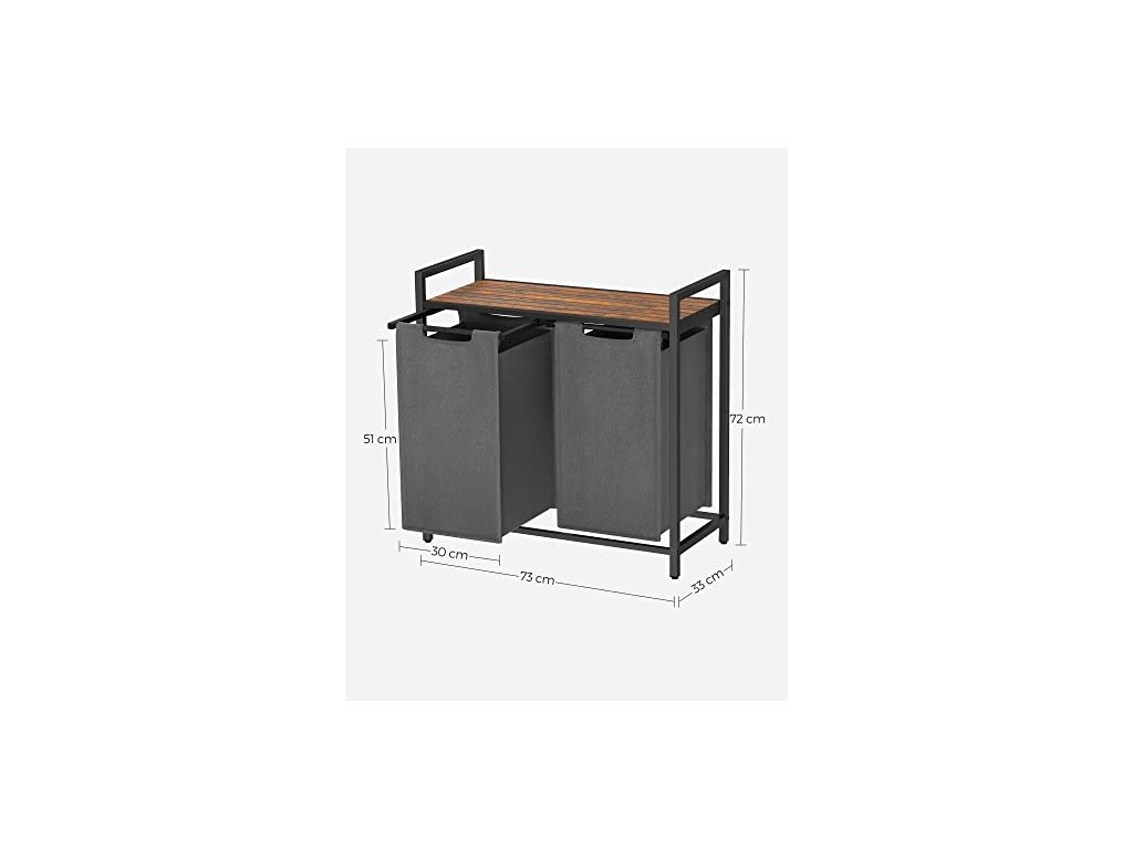 Dvoukomorový koš na prádlo s policí, 73 x 33 x 72 cm, 2 x 46 l, rustikálně hnědý a šedý