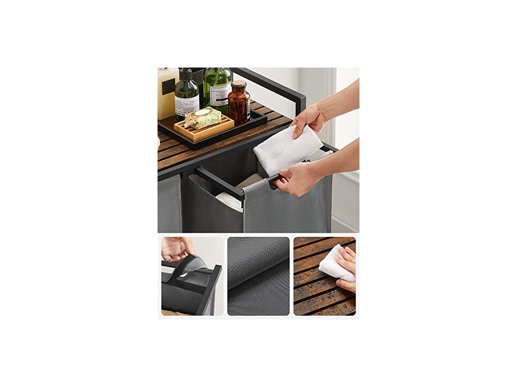 Horní police tohoto koše na prádlo vám poskytne další úložný prostor, abyste měli prací prostředky, aviváže nebo potřeby do koupelny na dosah. Koš na prádlo má 2 snadno výsuvné a vyjímatelné pytle z oxfordské tkaniny a kovový rám.