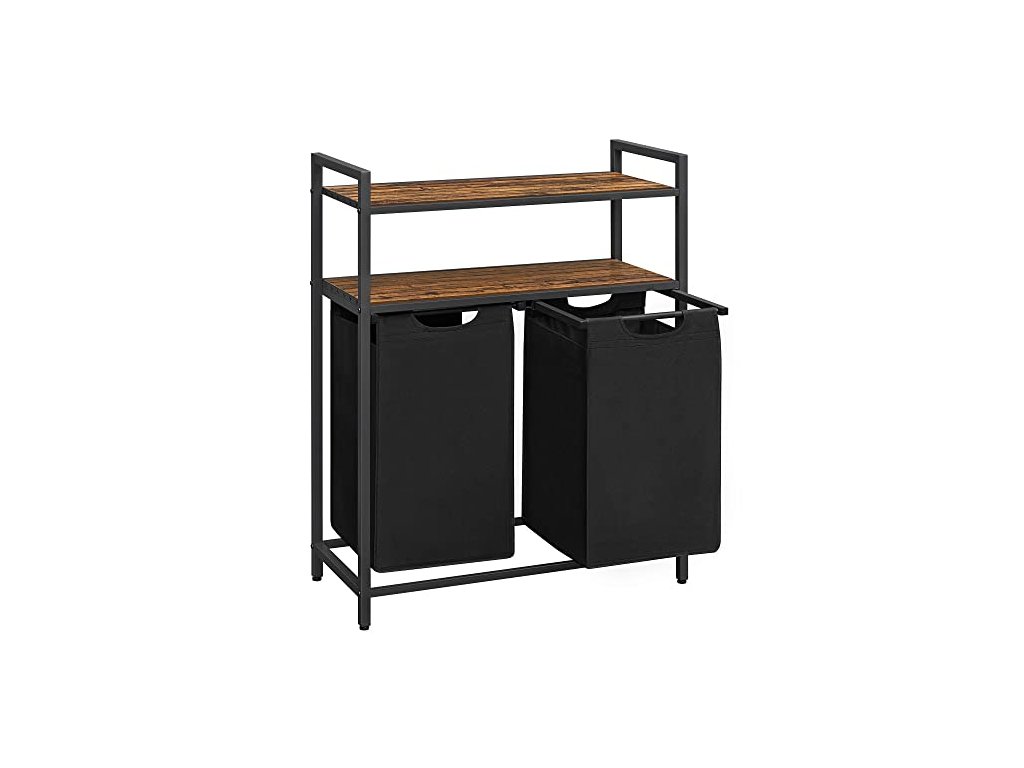 Dvoukomorový koš na prádlo se 2 policemi, 2x 46 l, rustikálně hnědý a černý