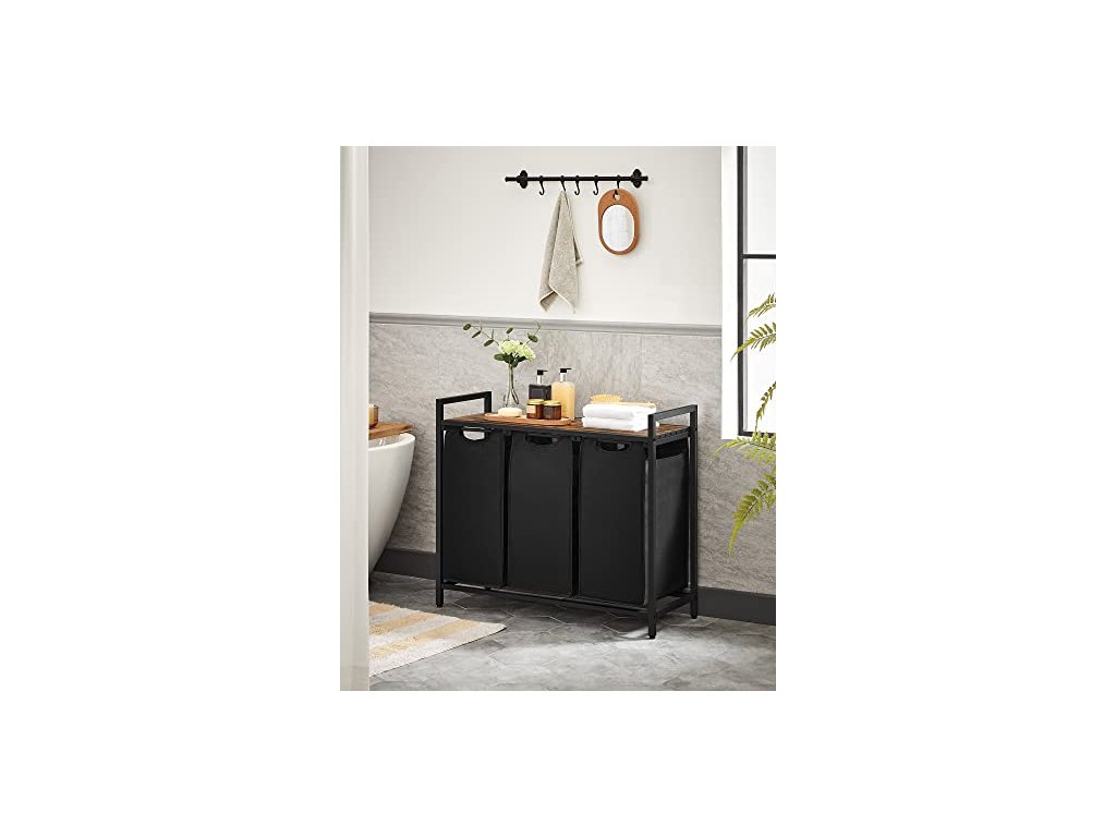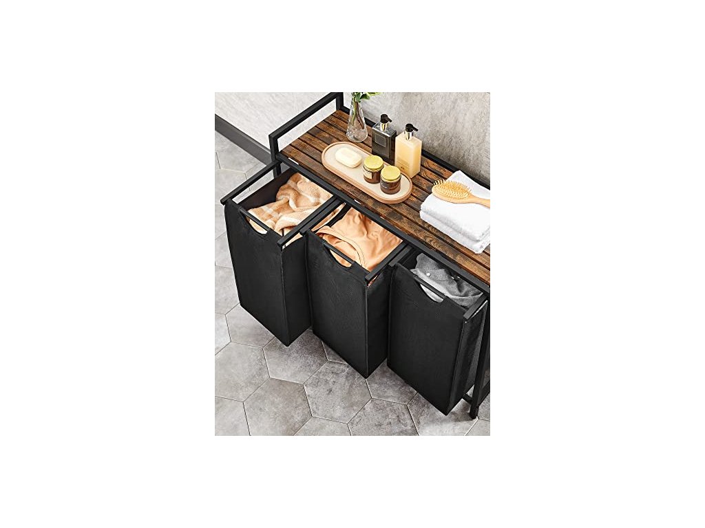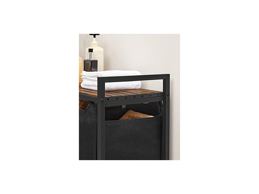 Tento koš na prádlo je vybaven policí, která poskytuje další prostor pro uspořádání pracích prostředků nebo toaletních potřeb. Jeho lamelová konstrukce umožňuje proudění vzduchu pro dobré větrání a zabraňuje hromadění zápachu z prádla. Koš má 3 vytahovací a vyjímatelné vaky na prádlo, polici a kovový rám.