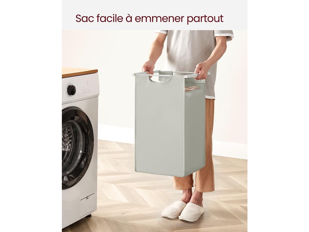 Tento koš na prádlo je vybaven policí, která poskytuje další prostor pro uspořádání pracích prostředků nebo toaletních potřeb. Jeho lamelová konstrukce umožňuje proudění vzduchu pro dobré větrání a zabraňuje hromadění zápachu z prádla. Koš má 3 vytahovací a vyjímatelné vaky na prádlo, polici a kovový rám.