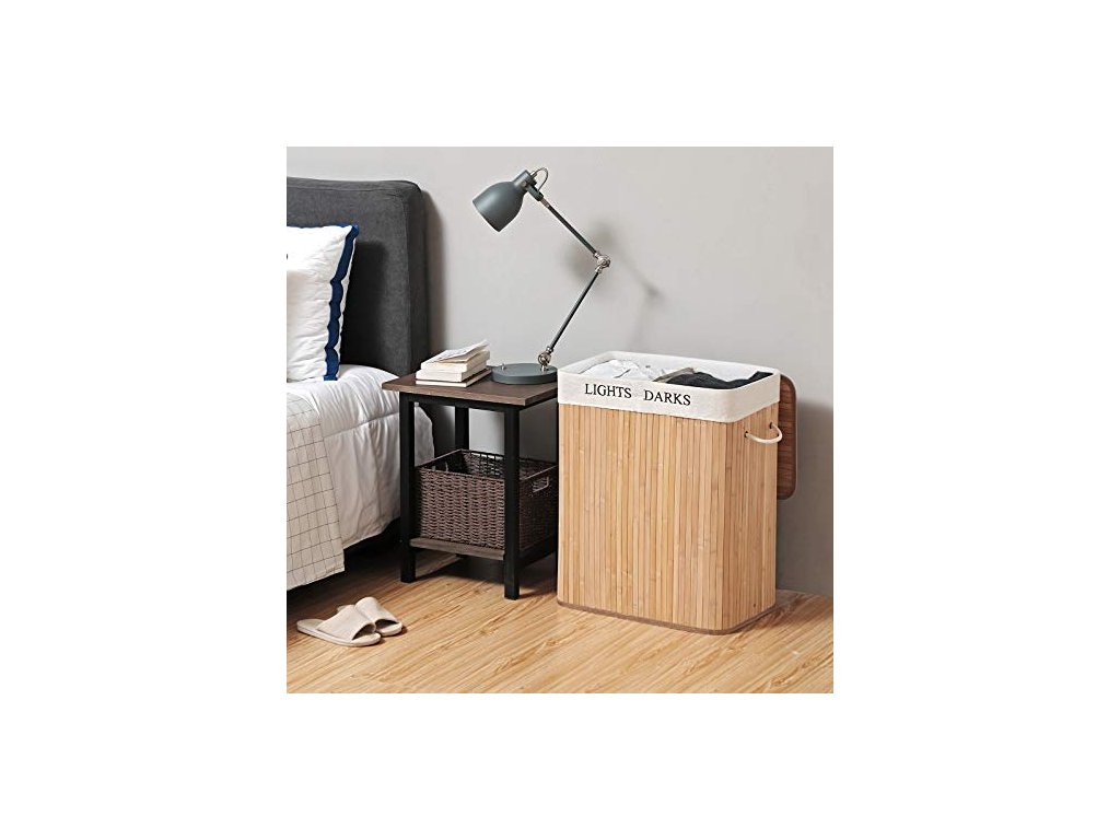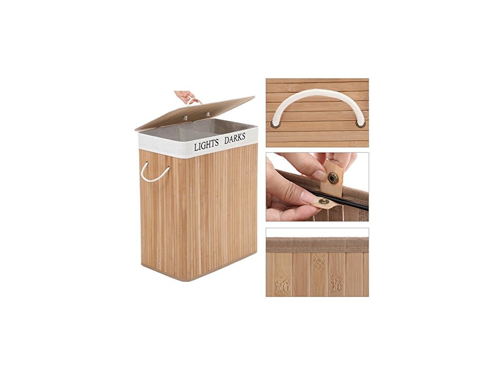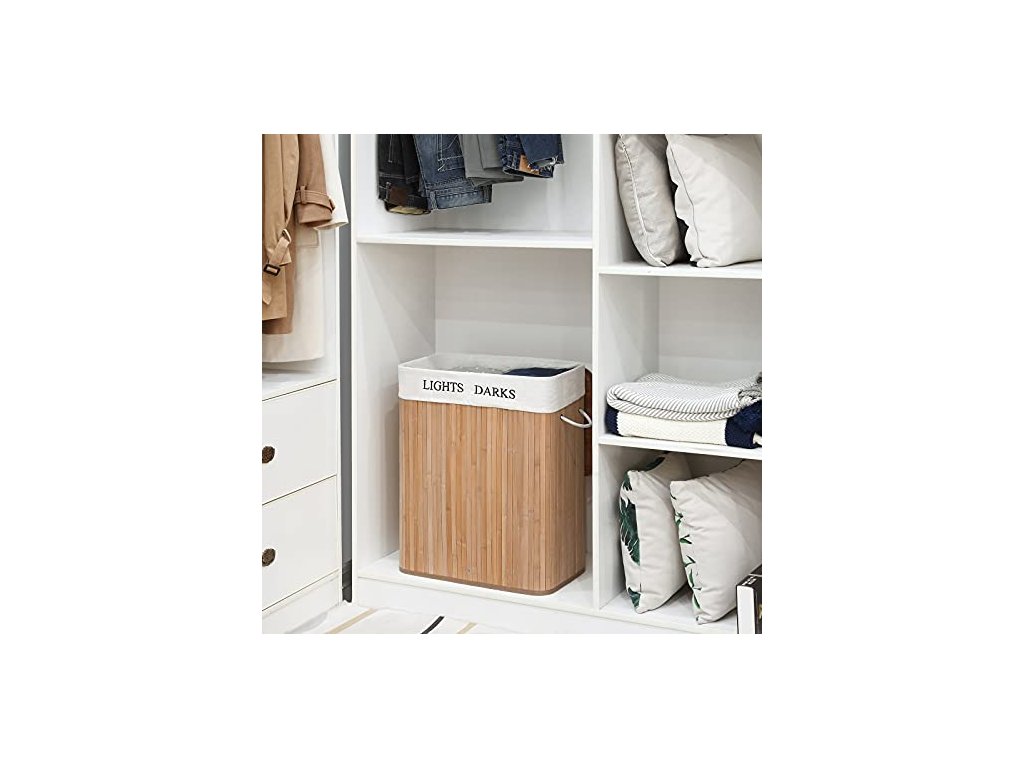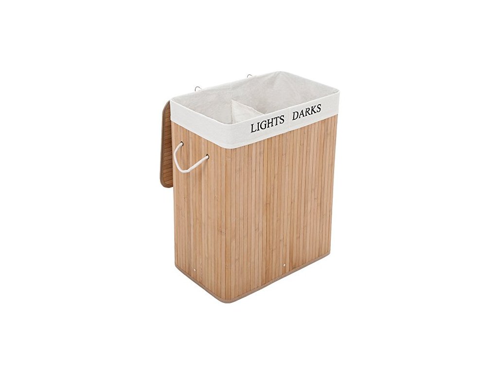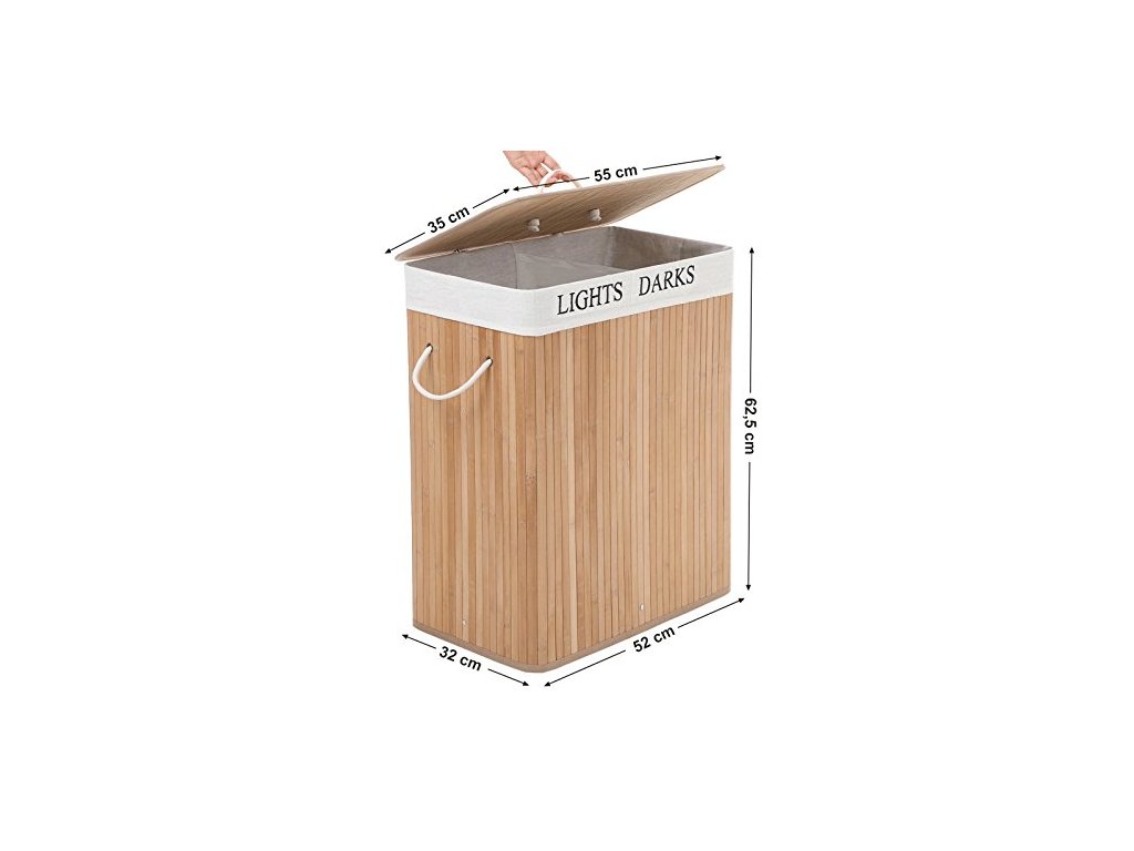 Koš na prádlo, 52 x 32 x 62,5 cm, 2 oddíly, 100 l, přírodní