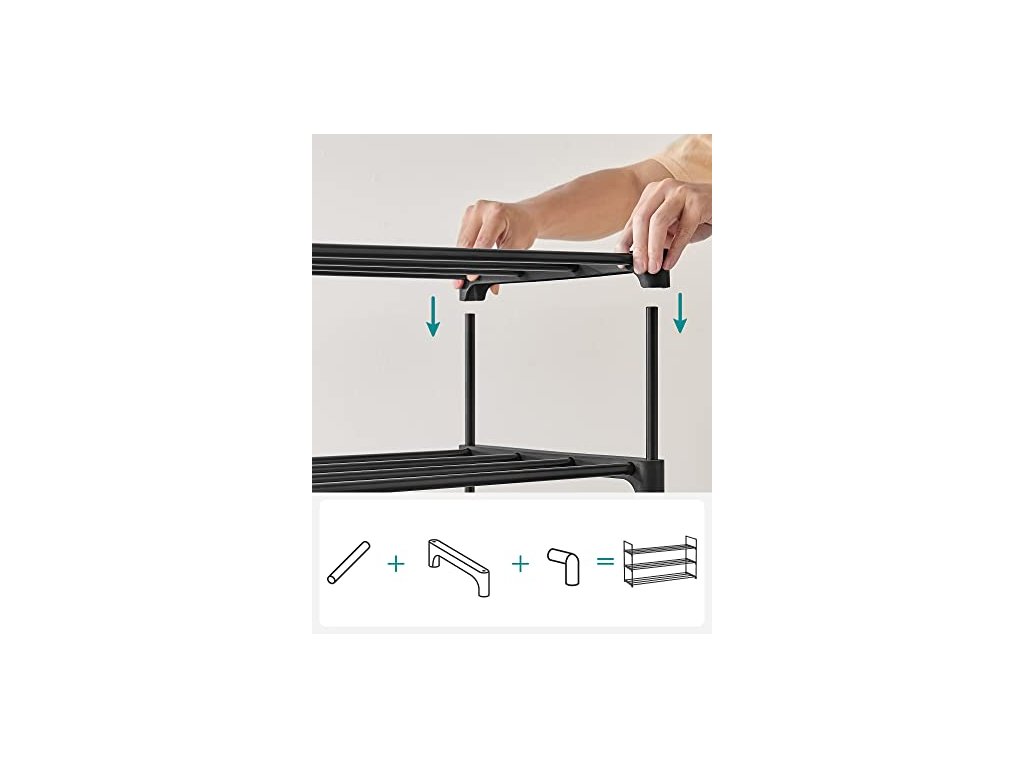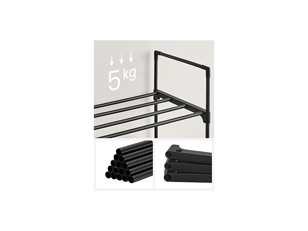 Silné kovové trubky spojené kvalitními plastovými spojkami tvoří robustní polici na boty. Každé patro unese až 5 kg, což botám poskytne silnou oporu. Kovový organizér pro skladování obuvi se 3 policemi, snadná montáž, 12 až 15 párů bot, stohovatelný regál