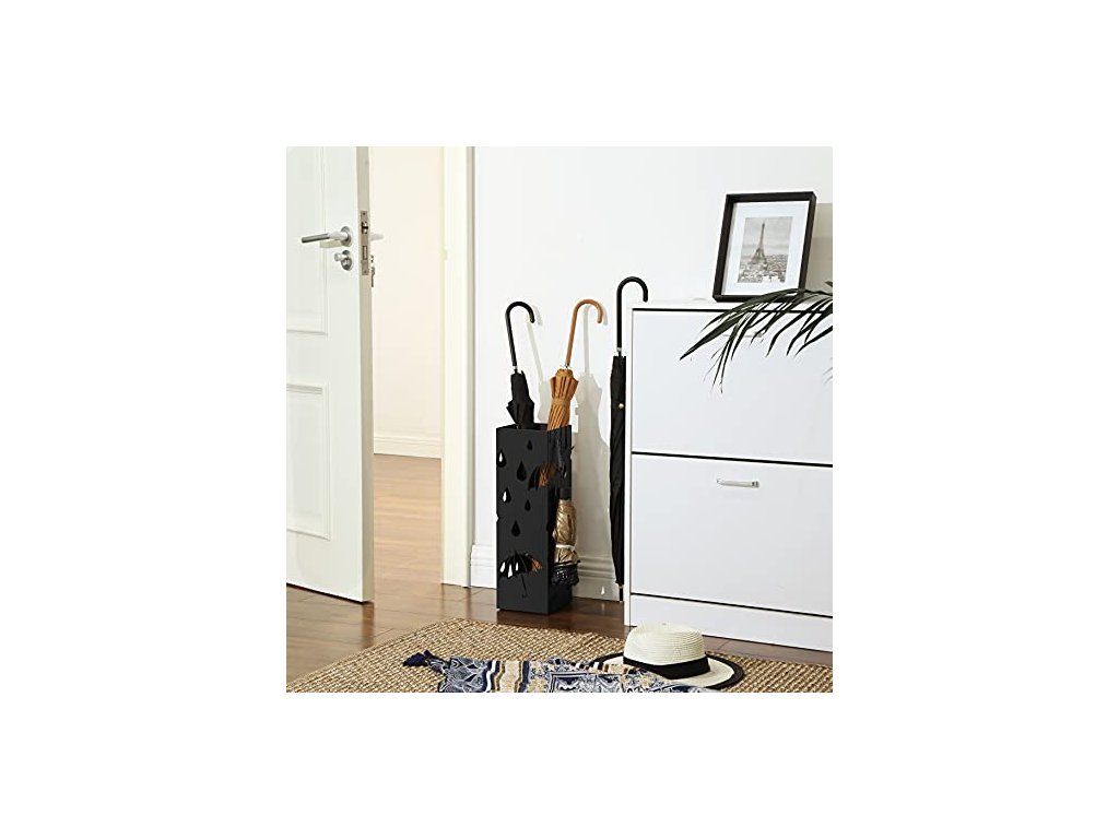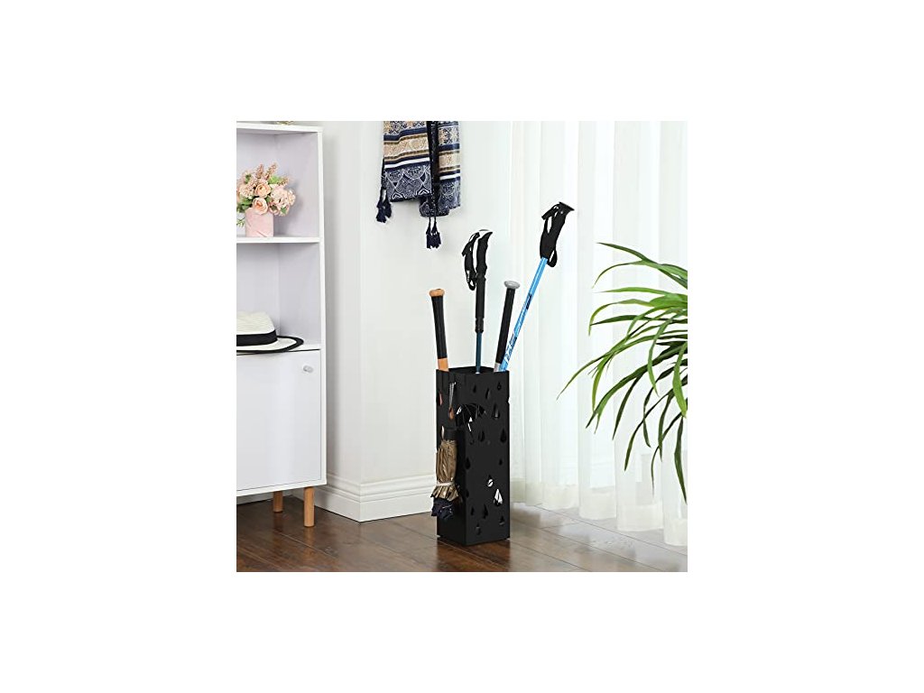 Nedovolte, aby vám kapky deště z deštníků zničily podlahu a vaši lásku k deštivým dnům: stačí je zastavit pomocí odkapávací misky v tomto držáku deštníků a pak si užívat den - schoulit se s knihou nebo nedělat nic jiného než poslouchat déšť. Držák na deštníky s odkapávací miskou a 4 háčky
