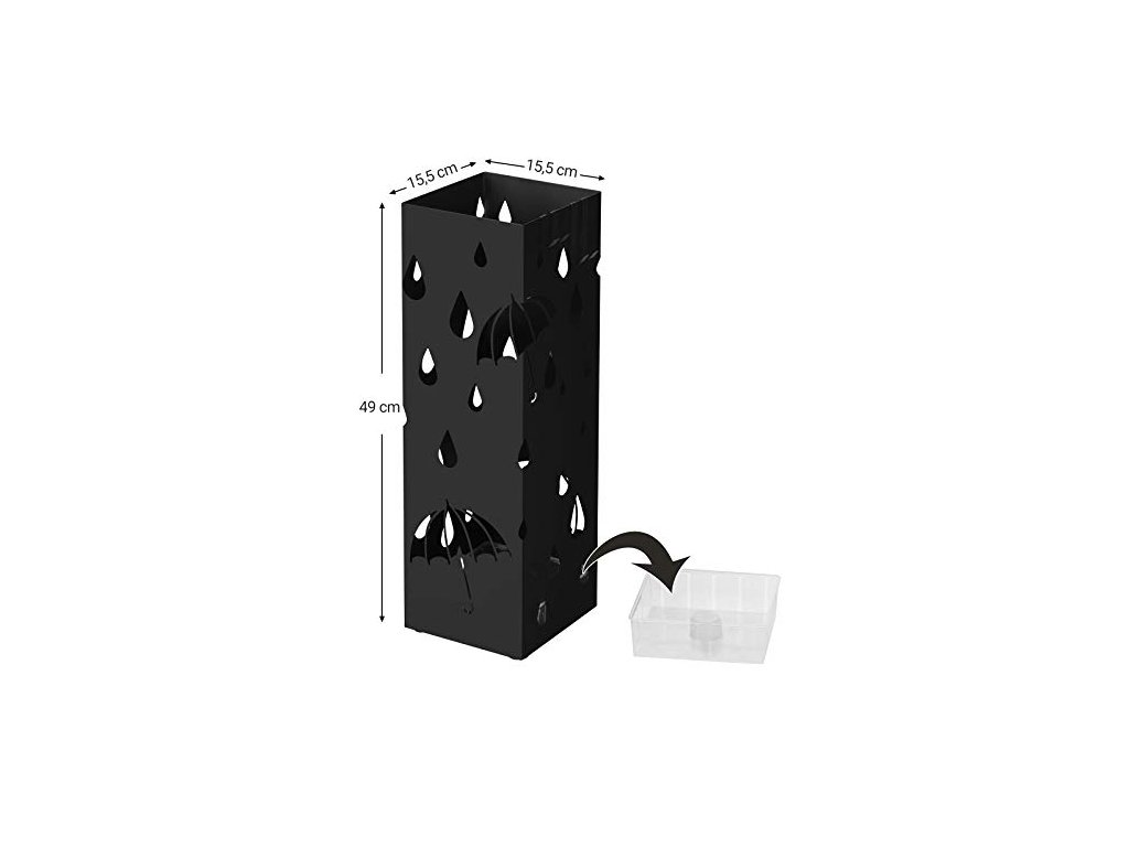 Kovový stojan na deštníky, 15,5 x 15,5 x 49 cm, černý