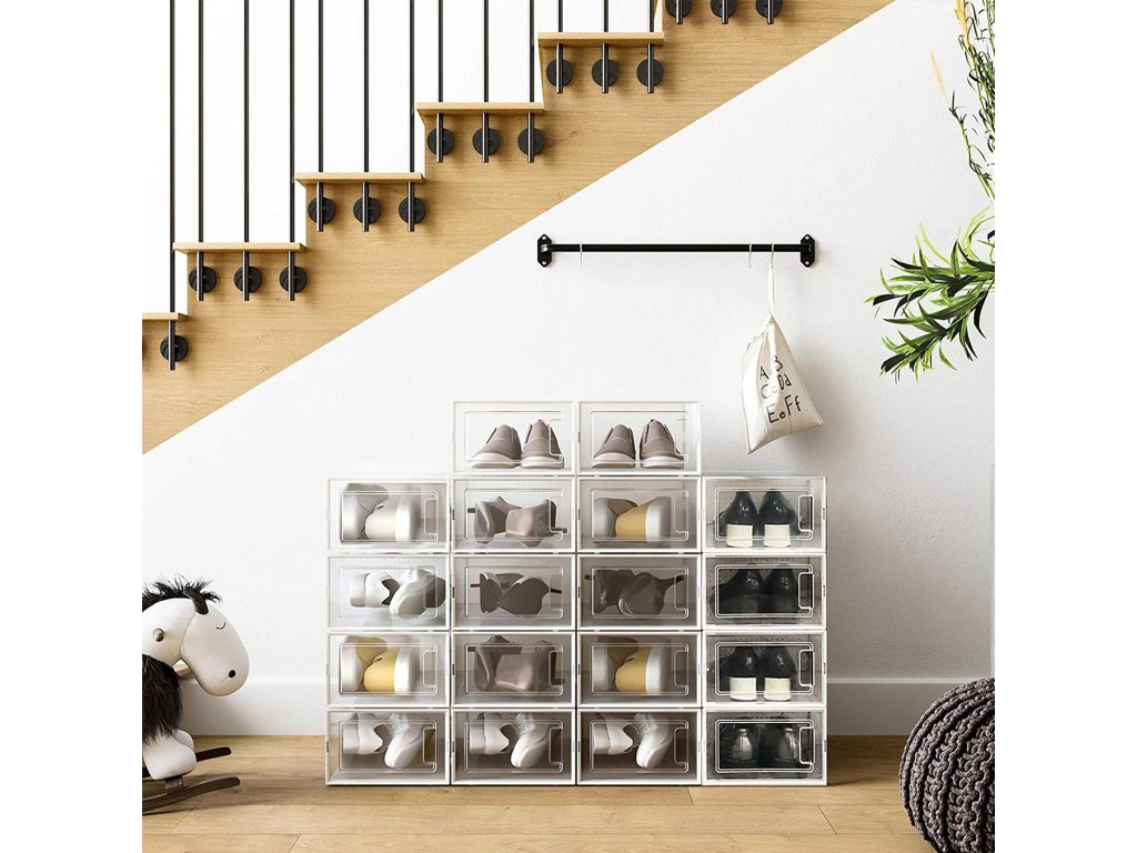 Pokud se váš domov pomalu, ale jistě stává nepořádkem v botách, proč je neuspořádat v tomto balení 8 klasických botníků s průhledným tělem a předními dvířky? Prohlédněte si celou svou kolekci v pořadí. Nemusíte každé ráno vyndávat a prohrabovat se krabicemi od bot, abyste hledali své boty na dojíždění. Průhledné tělo s průhlednými předními dvířky vám umožní nahlédnout do vaší věže s lehkostí chytnutí a běhu. Jednoduše sestavte přední, zadní a horní část a získáte tyto organizéry na boty o vnitřních rozměrech 21,5 x 30 x 13,5 cm pro max. velikost UK 10,5; každý pár tenisek, podpatků nebo balerín bude mít své vlastní místo. Pokud chcete krabice ukládat organizovaně, odpovídající design drážek nahoře a dole usnadňuje jejich stohování; větrací otvory umožňují botám dýchat. Balení 8 průhledných botníků s průhlednými předními dvířky, stohovatelným a skládacím designem a větracími otvory. Rozlučte se s rozházenými botami všude a dejte si v nich pořádek hned teď! Barva: Průhledná, Bílá. Materiál: Tělo z polypropylenového plastu PP (Polypropylen), přední dvířka z polypropylenového plastu PP (Polypropylen), rám z ABS plastu. Velikost jedné krabice: 22 x 33,3 x 14 cm. Vnitřní rozměry jedné krabice: 21,5 x 30 x 13,5 cm. Hmotnost výrobku: 2,4 kg