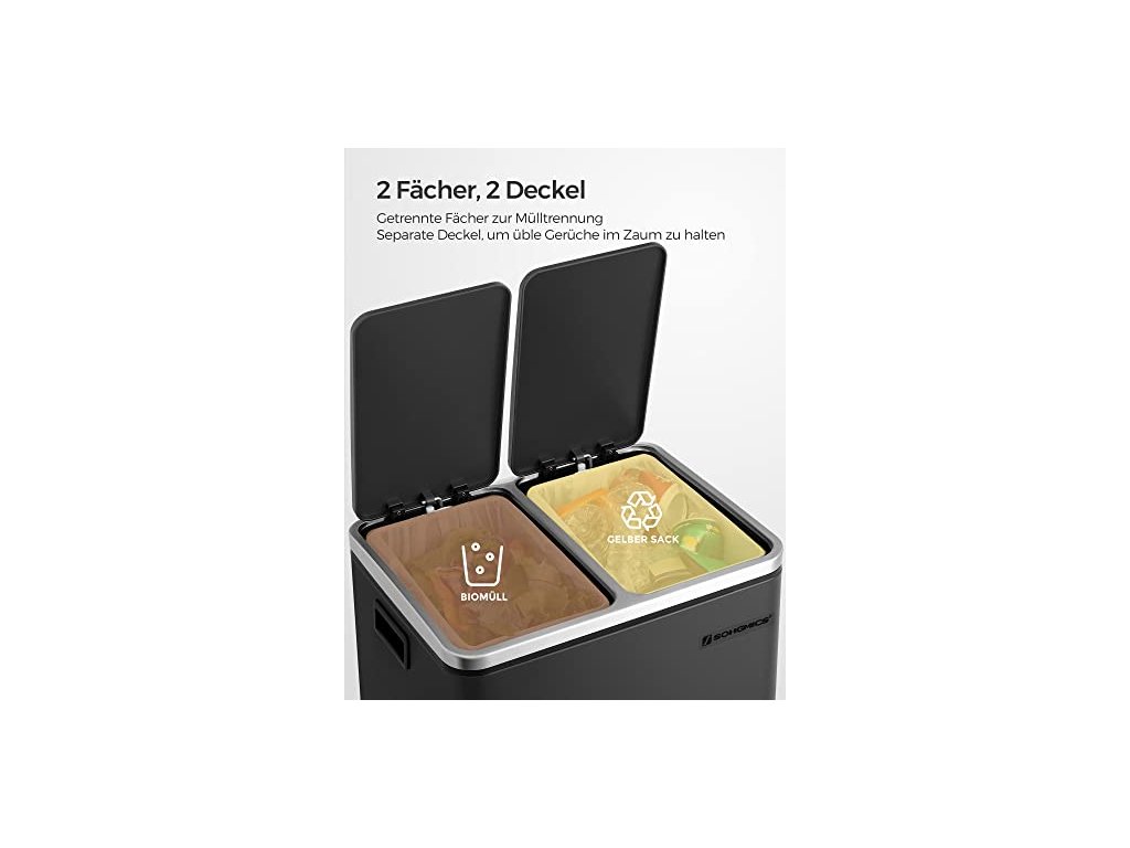 Vše, co musíte udělat, je sešlápnout pedál, abyste otevřeli víko, a nyní máte volné ruce k vyhození recyklovaného odpadu. Ocelový odpadkový koš, stupňovitý koš s vnitřním kbelíkem a držadly, měkký uzávěr, těsnění proti zápachu
