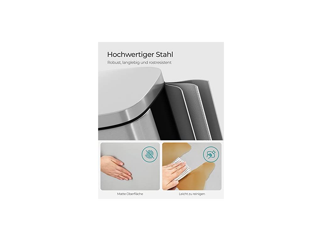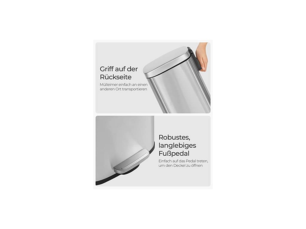 Pouze jednou nohou: k otevření víka koše stačí sešlápnout pedál - máte tak volné ruce k vysypávání odpadků do vnitřního koše. Pedálový odpadkový koš 30 l, s plastovým vnitřním vědrem, výklopným víkem, měkkým uzávěrem, hygienický a odolný proti zápachu