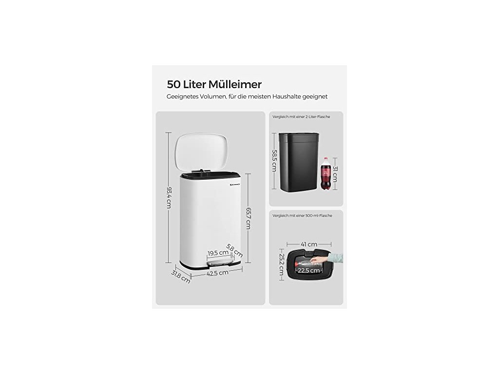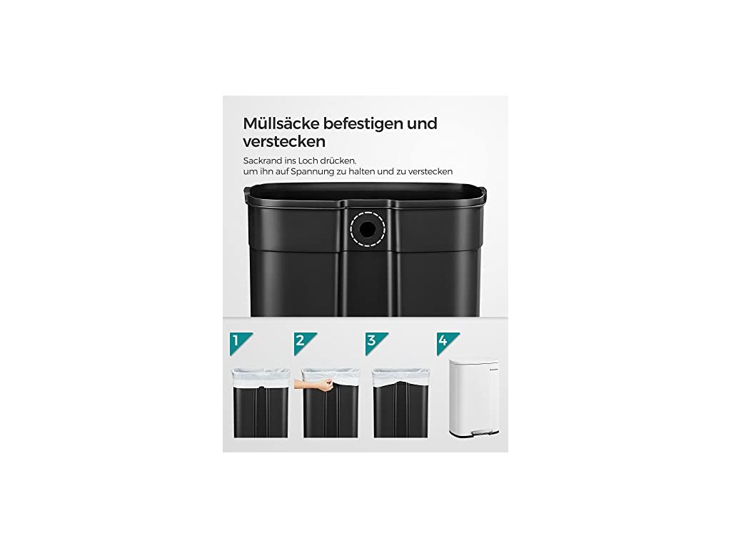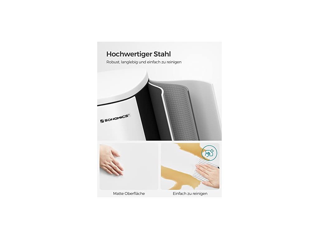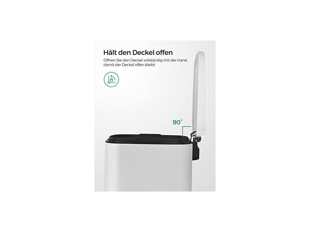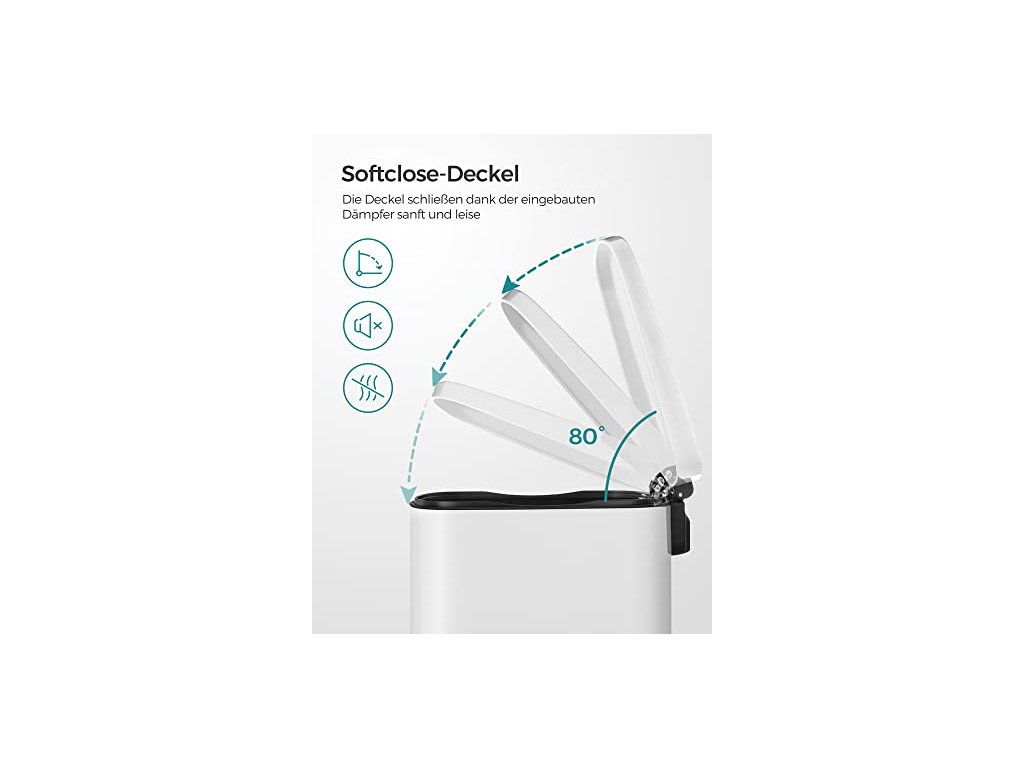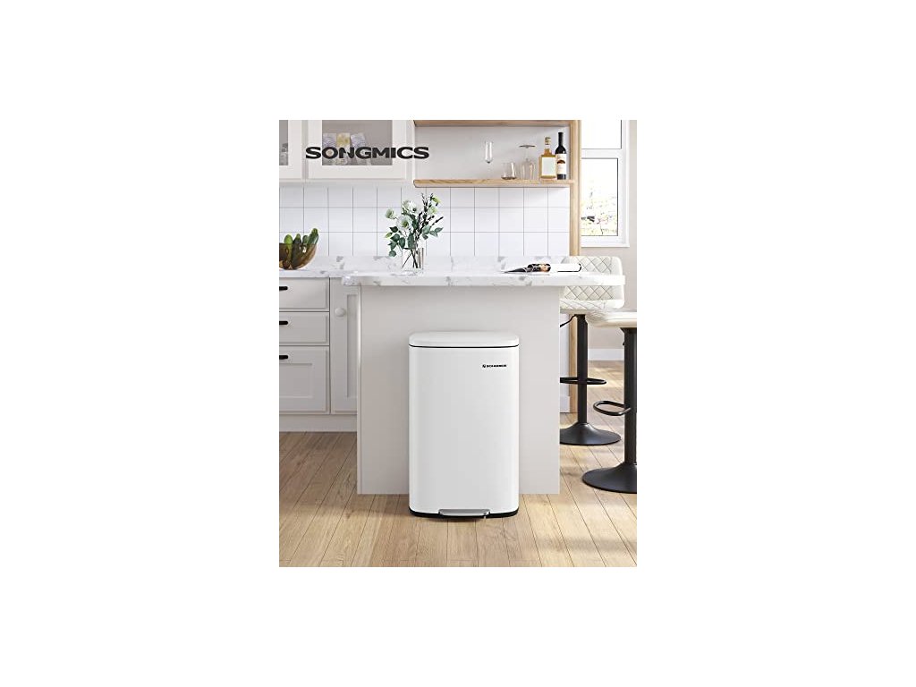 Kuchyňský koš je sice vyroben z pevného kovu, ale je šetrný - díky tlumicímu mechanismu se víko zavírá jemně, pomalu a tiše, bez hlasitého řinčení. Pedálový koš na odpadky, objem 50 l, s plastovým vnitřním kbelíkem, výklopným víkem, měkkým uzávěrem, hygienický a odolný proti zápachu