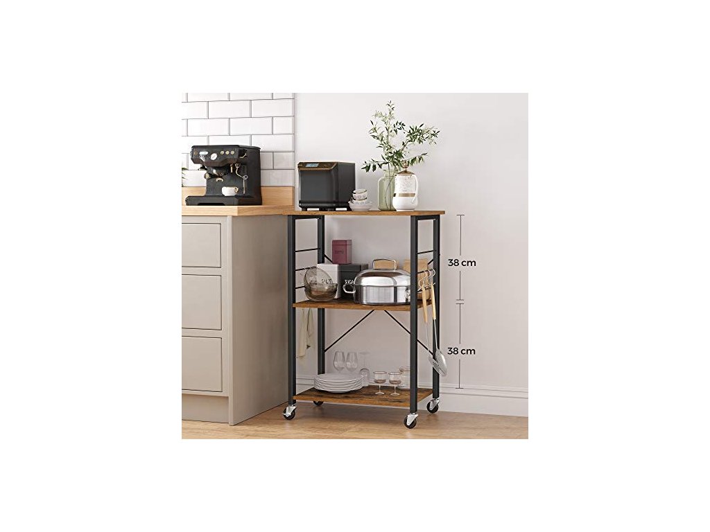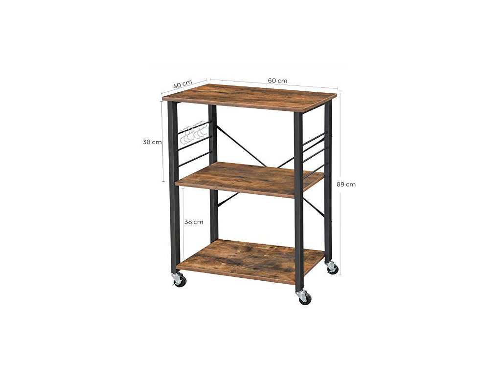 Pojízdný kuchyňský regál, 60 x 40 x 89 cm, rustikálně hnědý