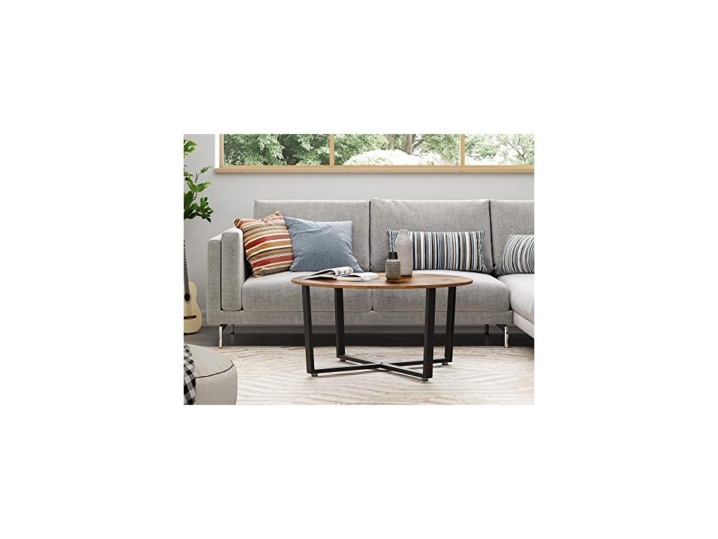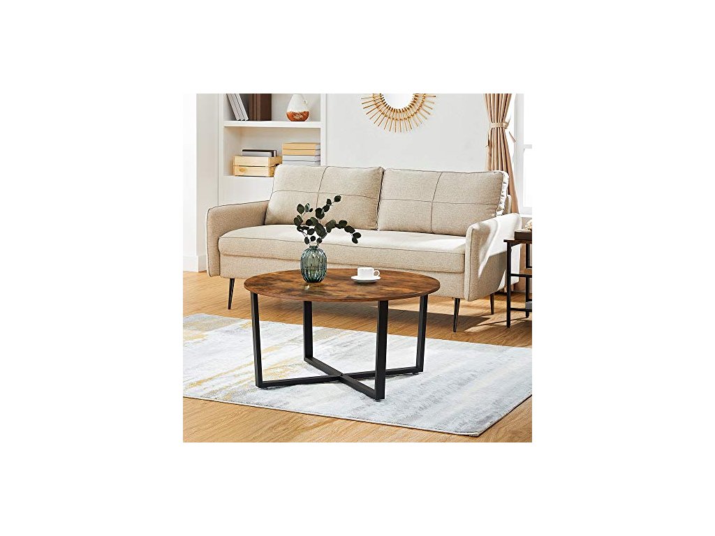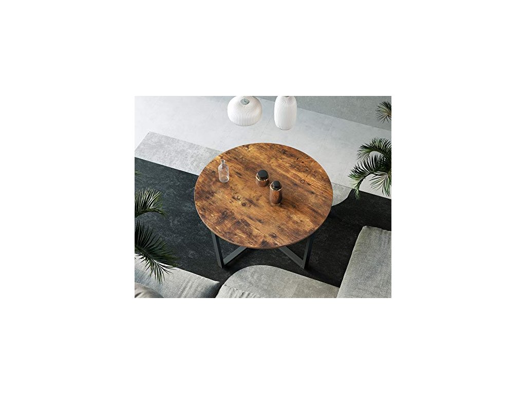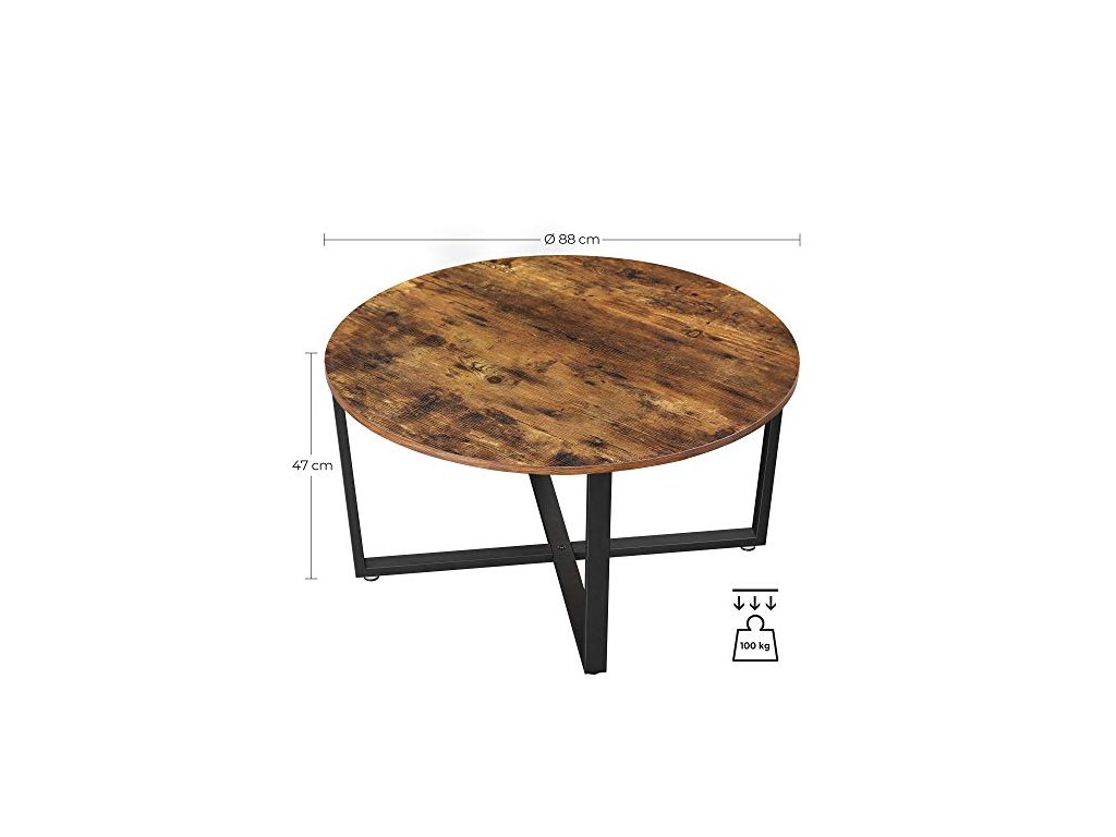 Konferenční stolek, průměr 88 cm, rustikálně hnědý a černý
