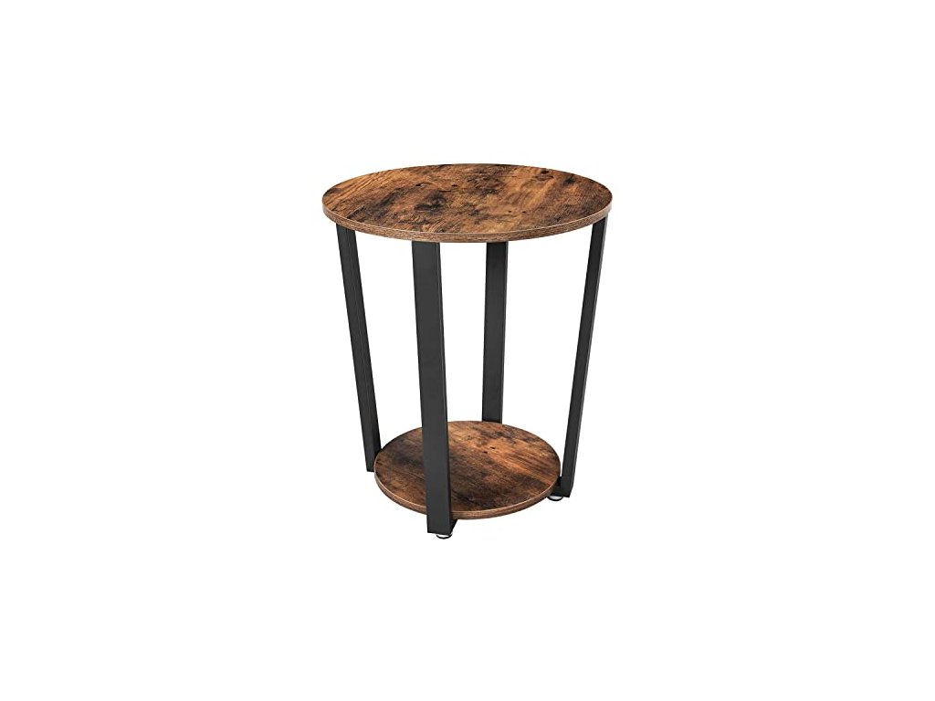 Tento odkládací stolek díky svým černým ocelovým tyčím a tmavé desce z dřevotřísky podtrhne starožitnou dekoraci, výzdobu z nádherných květin či hostinu pro hosty. Kulatý odkládací stolek s ocelovým rámem. Jednoduchá montáž