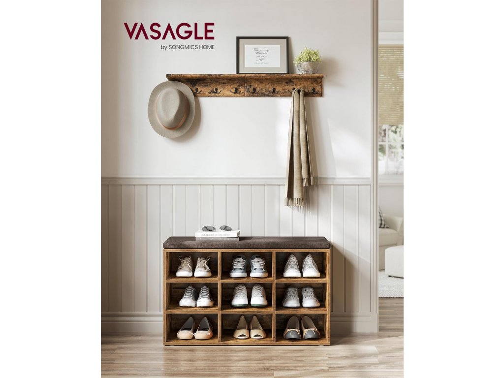 Botník, 9 přihrádek, 78,5 x 30,3 x 48 cm, rustikálně hnědý