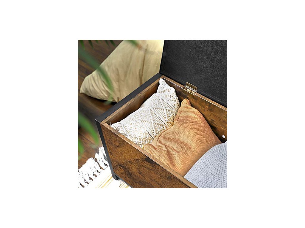 Pod velkou plochou sedadla se skrývá prostorná přihrádka na polštáře, pyžama nebo knihy. Bezpečnostní panty udržují truhlu otevřenou a chrání před skřípnutím prstů. Snadná montáž