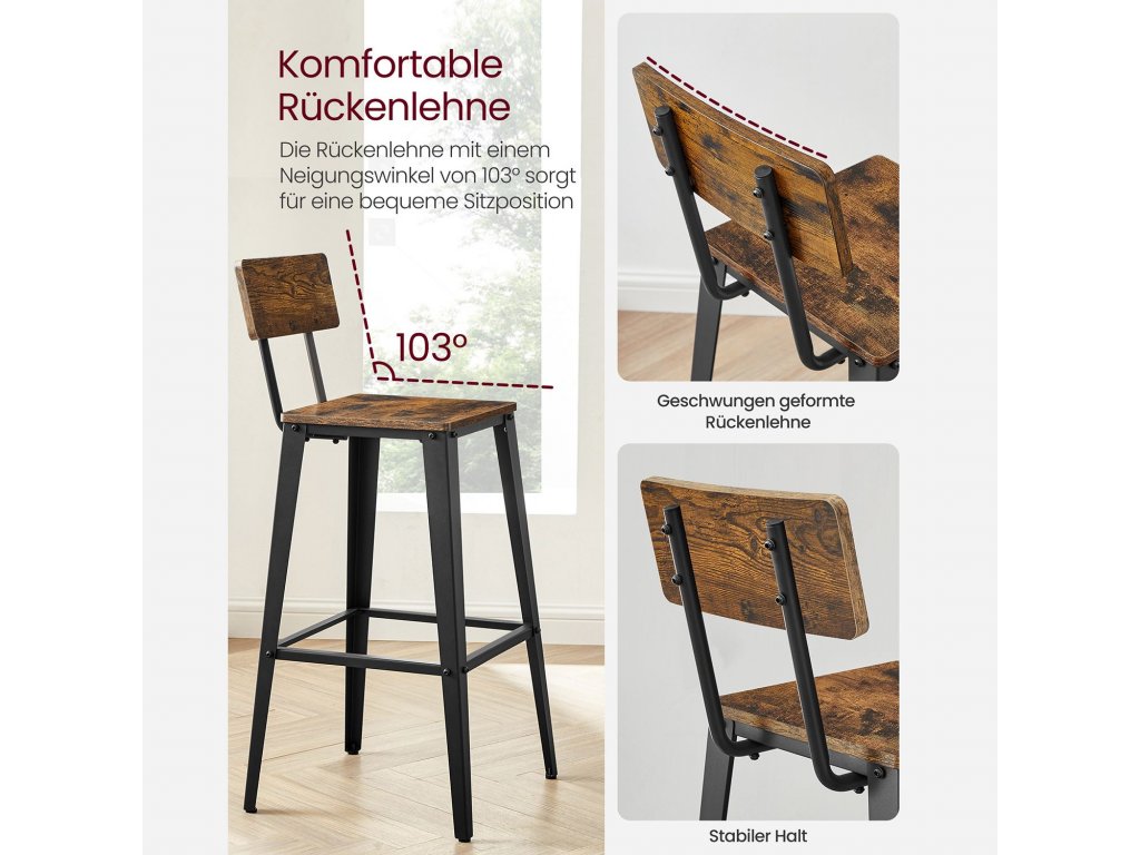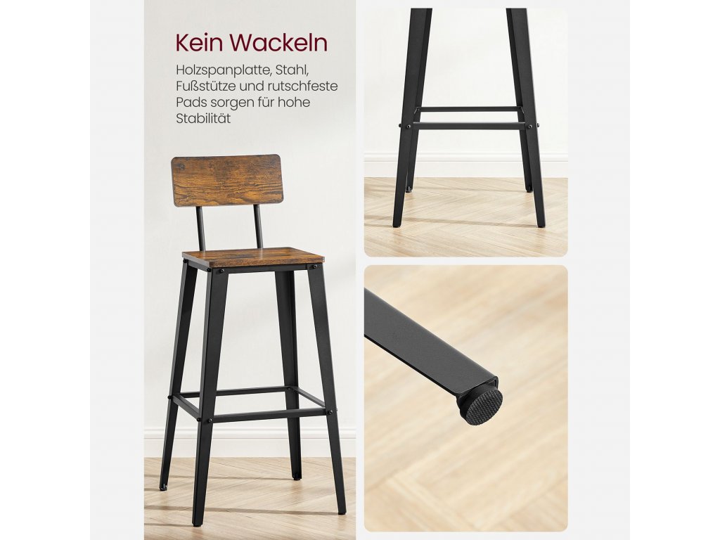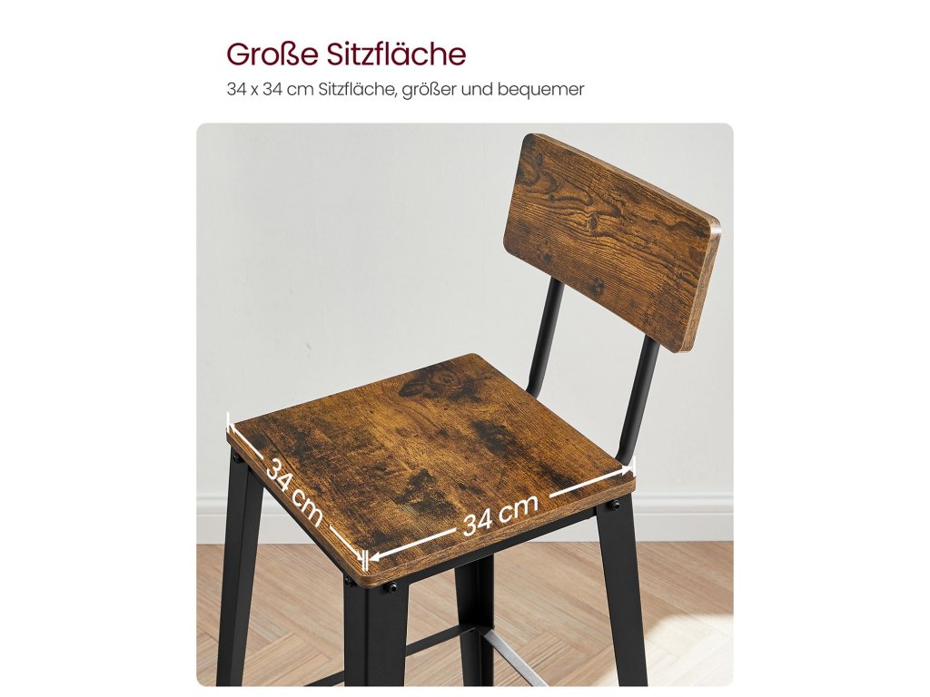 Barová židle, 2 kusy, 45,4 x 45,4 x 102,2 cm, rustikální hnědá a černá