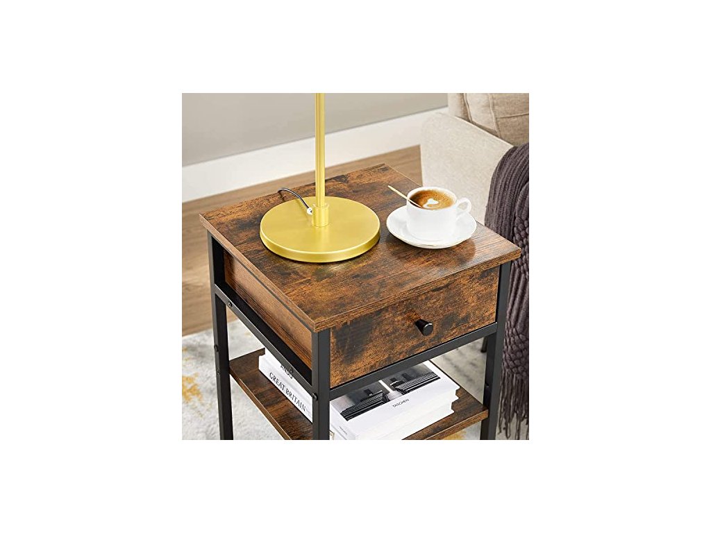 Noční stolek se 2 policemi, 35 x 35 x 70 cm, rustikálně hnědý a černý