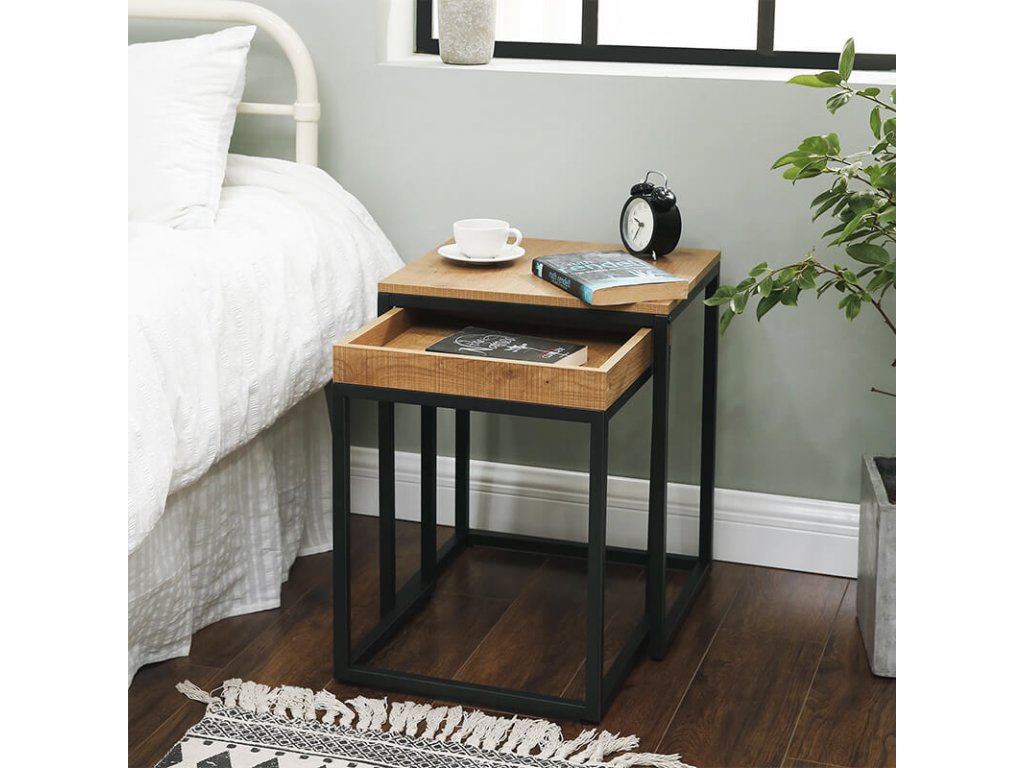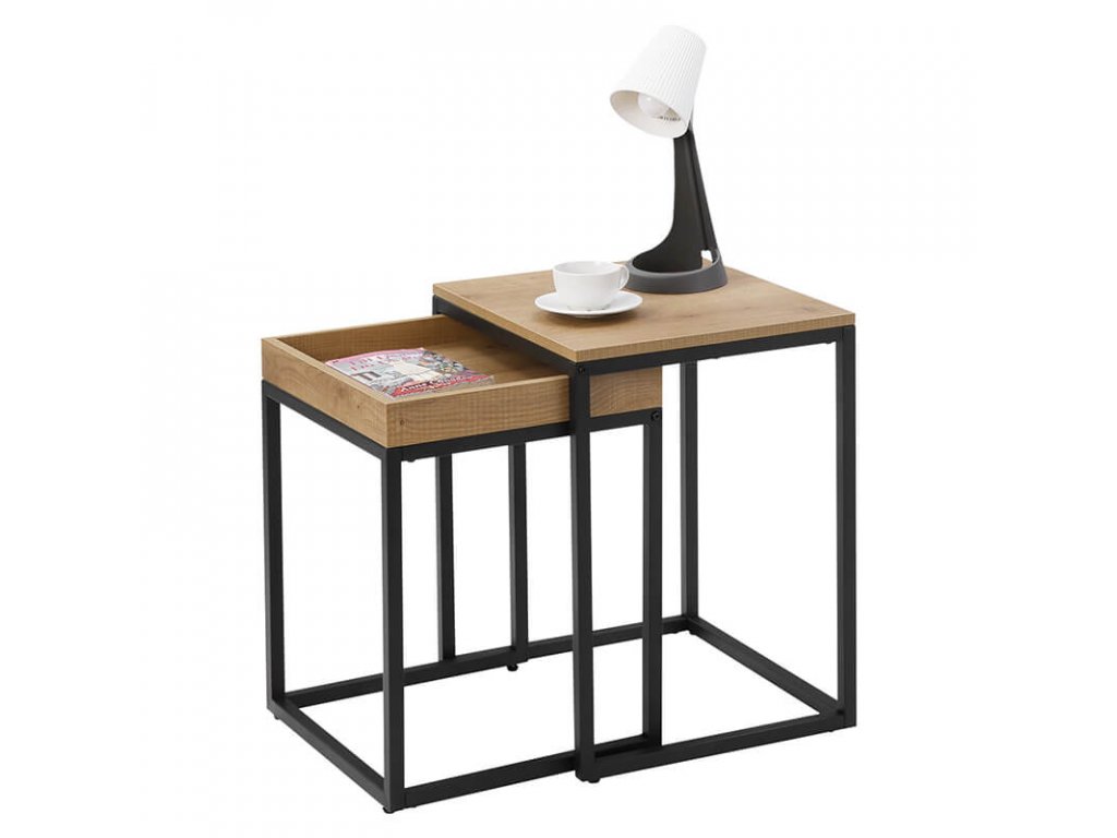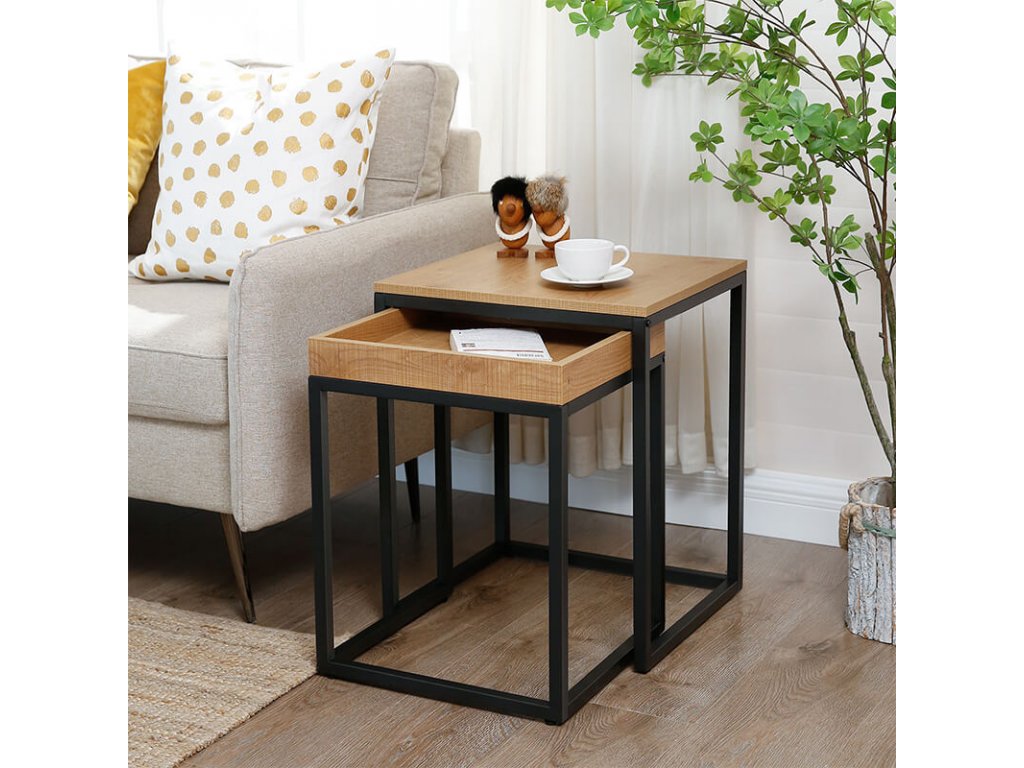 Použijte 2 stolky jako pár a vytvořte jedinečný konferenční stolek před pohovkou. Snadno je můžete složit do hnízda, abyste ušetřili místo, nebo nabídnout úkryt pro dálkové ovladače. Také je můžete oddělit do 2 místností pro větší pohodlí.