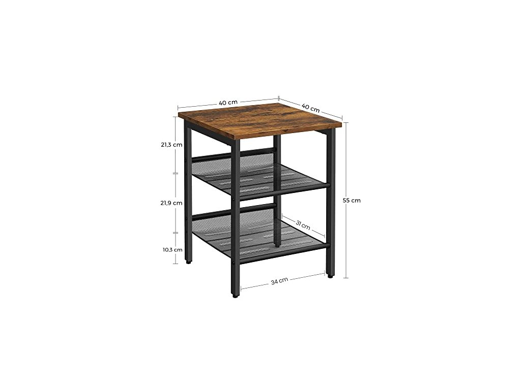 Konferenční stolek se 2 policemi, 40 x 40 x 55 cm, rustikálně hnědý a černý