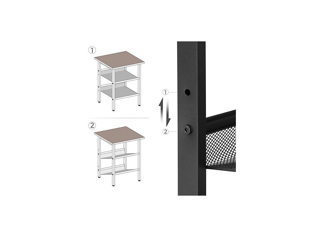 Ploché nebo šikmé, vyberte si: Každý stolek má dvě robustní síťované police, které můžete připevnit buď naplocho, nebo mírně šikmo a vhodně na ně umístit časopisy, knihy nebo různé jiné předměty. Stabilní ocelový rám. Snadná montáž