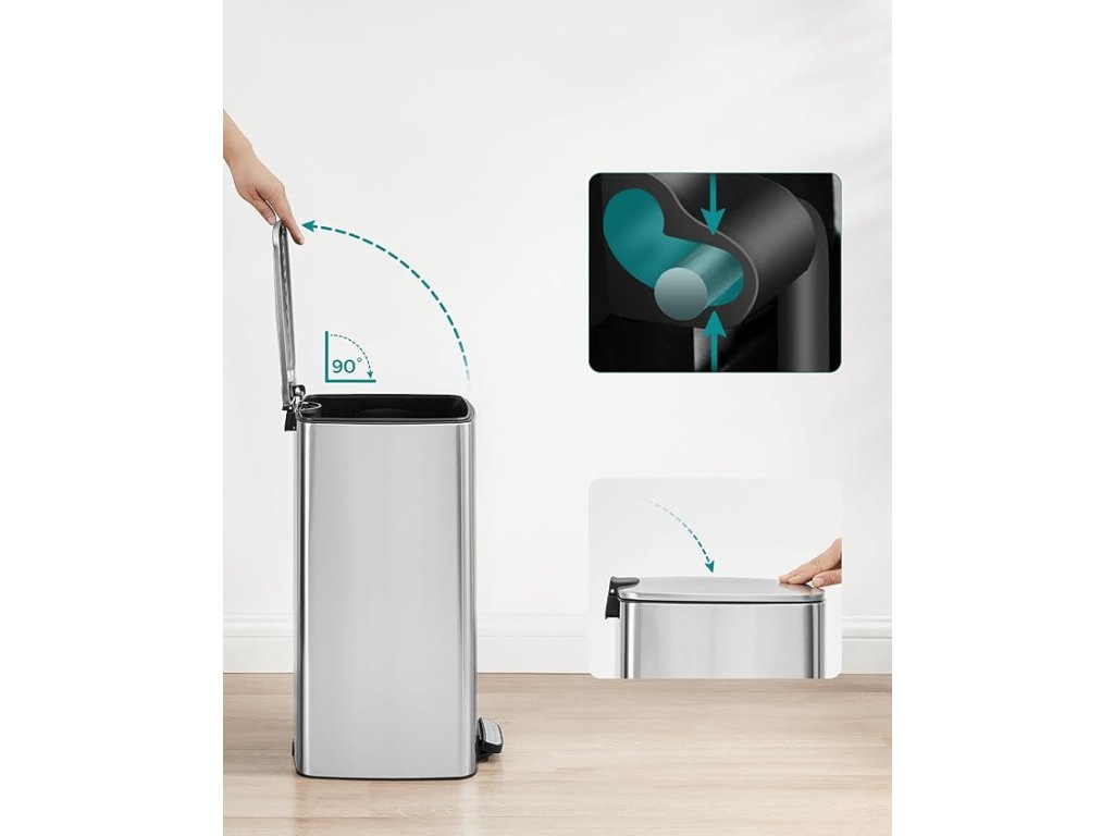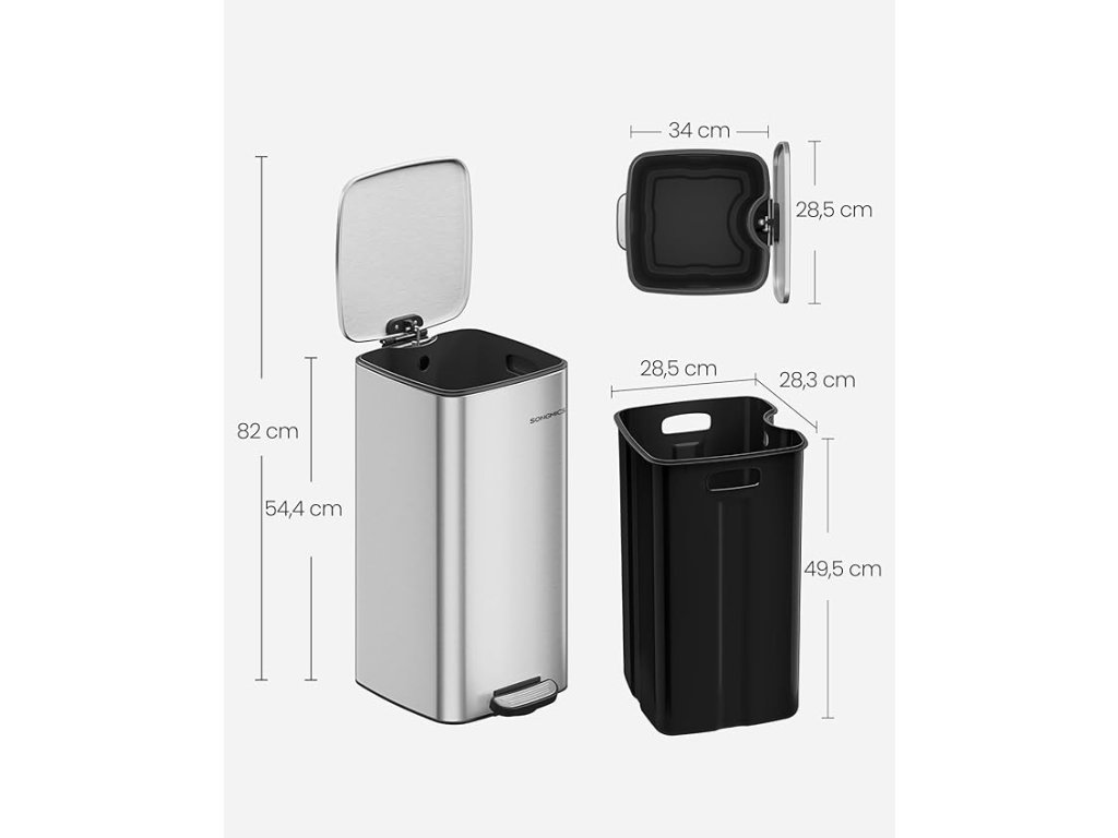 Tento kuchyňský koš s obdélníkovým tvarem nabízí kapacitu 30 litrů v malém prostoru, čímž optimalizuje využití místa ve vaší místnosti. Dno tohoto koše je vybaveno protiskluzovými podložkami, které posilují jeho stabilitu a zabraňují domácím mazlíčkům v jeho vylití, takže váš prostor bude uklizený. Díky ocelovému rámu se tento moderní koš snadno vejde do vaší kuchyně, je odolný proti korozi a snadno se udržuje, takže si po celou dobu zachovává svůj elegantní vzhled. Víko tohoto pedálového koše má pomalý a tichý systém zavírání. Pro snazší likvidaci odpadu jej lze také zůstat otevřené i po delší dobu, pokud jej zvednete o 90°. Díky vnitřnímu kbelíku tohoto koše se snadno zbavíte odpadu. Je vybaven bočními úchyty pro snadné vyjmutí a upevňovacím otvorem pro zjednodušení výměny sáčků a udržení koše na místě. Rozměry produktu : 34 x 28,5 x 54,4 cm; 3,1 kg
