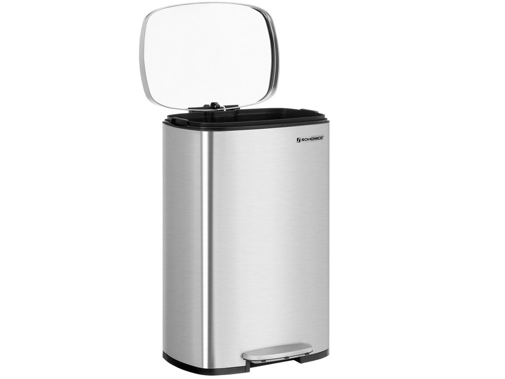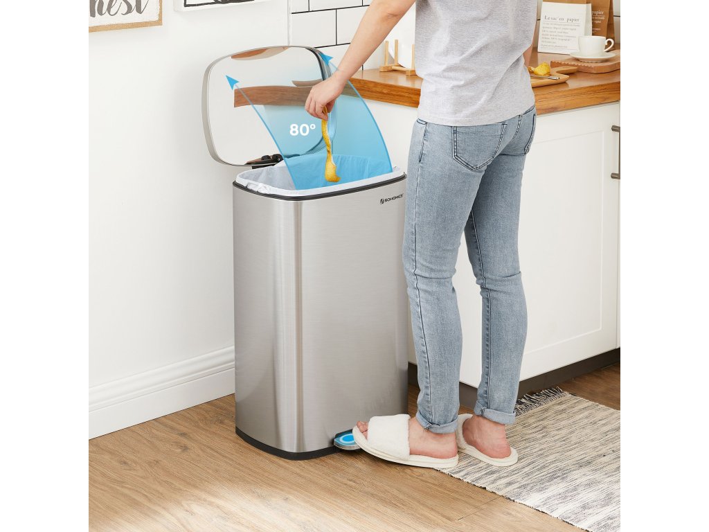 Není důvod, aby odpadkový koš vypadal ošuntěle. Od elegantní stříbrné barvy až po čisté linie se tento pedálový koš o objemu 50 litrů stane součástí designu vaší kuchyně. Přestože je kuchyňský koš vyroben z pevného kovového exteriéru, je šetrný – tlumičový mechanismus umožňuje jemné, pomalé a tiché zavírání víka bez hlasitého cinknutí. Pokud uklízíte po vydatné večeři, snadno ho nechte otevřené tak, že ho zcela zvednete; po použití jej jednoduše jemně zavřete rukou a udržíte tak pachy na uzdě. Tento odpadkový koš obsahuje odnímatelný kbelík s otvorem na sáček, takže můžete plastový sáček ponechat na místě; pokud se sáček náhodou rozbije a něco se vysype, stačí kbelíky vyjmout a snadno je vyčistit. Koš o objemu 50 litrů s vnitřním plastovým kbelíkem, výklopným víkem a pedálem pro snadnou likvidaci odpadu. Barva: Stříbrná. Materiál: Ocelový koš, vnitřní kbelík z plastu. Rozměry výrobku: 42,4 x 32 x 65 cm. Rozměry vnitřního kbelíku: 40,4 x 27,4 x 58,4 cm. Celková výška s otevřeným víkem: 93 cm. Hmotnost výrobku: 6,2 kg