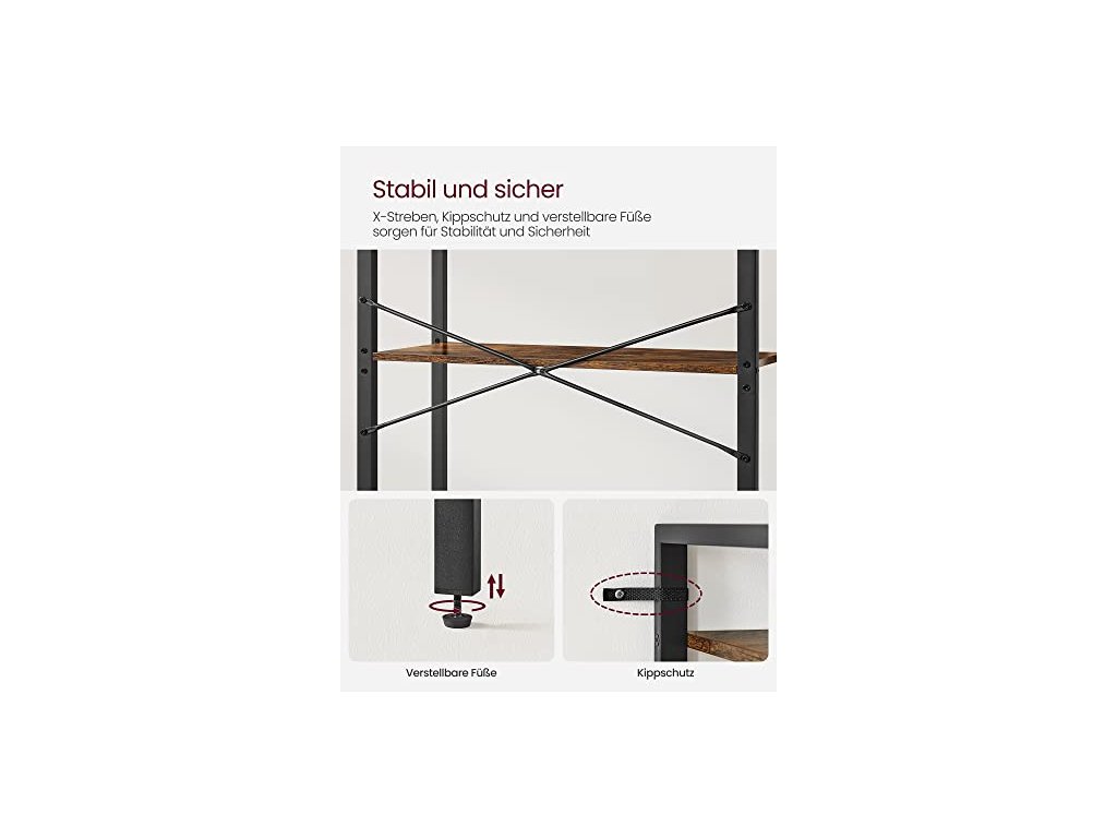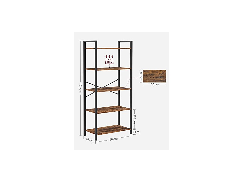 Regál, 5 pater, 66 x 30 x 153 cm, rustikálně hnědý a černý