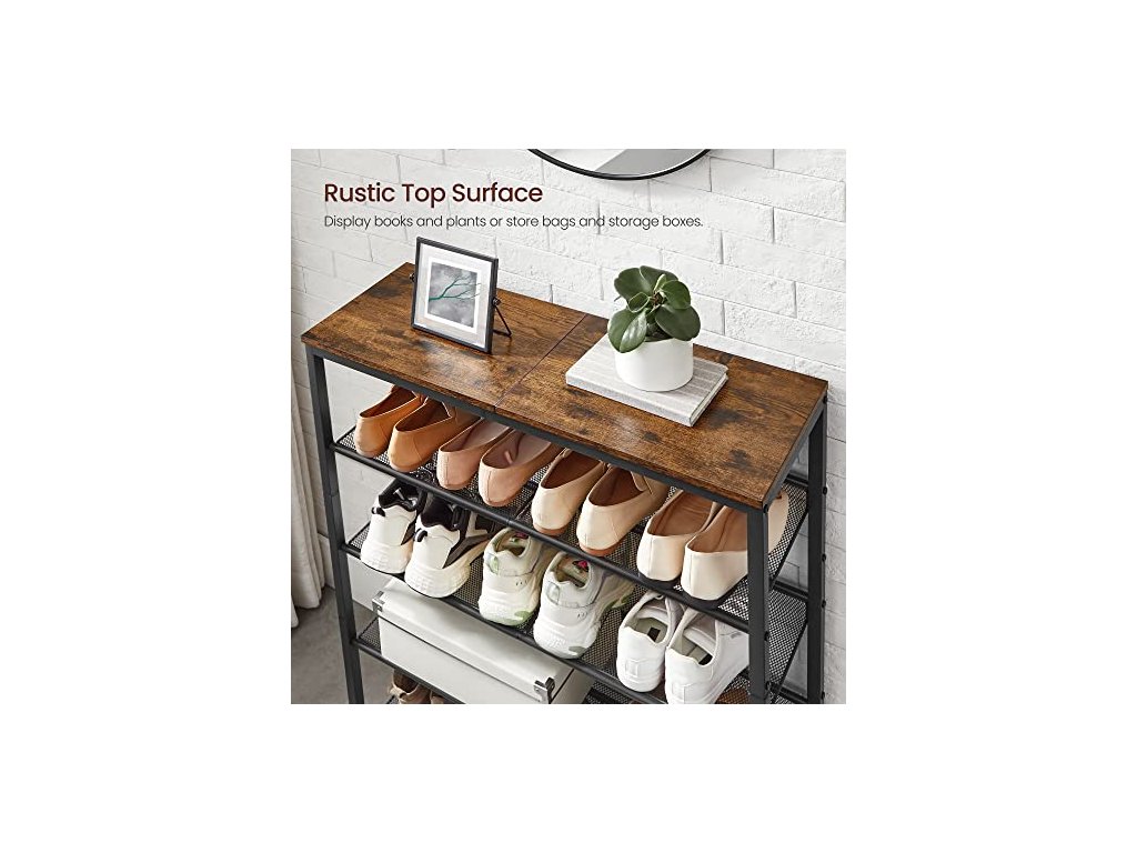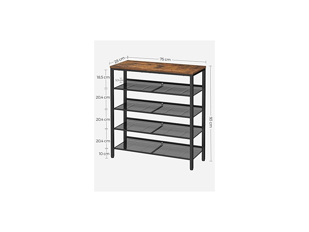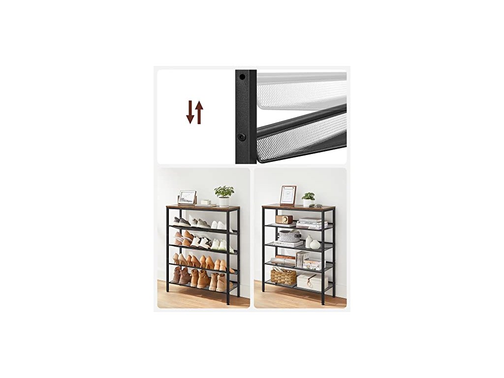 S maximální nosností 27 kg na horní ploše na tento botník můžete umístit tašky, fotky, knihy a dekorace. S maximální nosností 11 kg na každou polici sem můžete umístit všechny vaše boty. Nastavitelné síťované police, ocelový rám