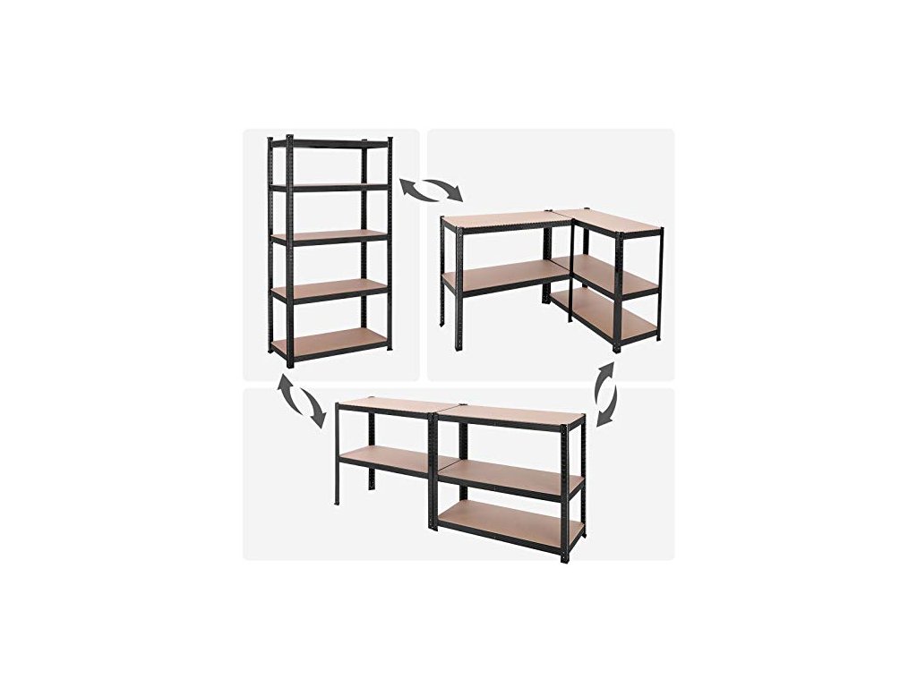 Tuto kovovou polici lze rozdělit na 2 samostatné jednotky, aby vyhovovala vašim úložným potřebám a prostoru. Po rozdělení také skvěle poslouží jako pracovní stůl s úložným prostorem. Každou polici lze snadno nastavit po 5 cm, což vyhovuje vašim potřebám pro ukládání předmětů různých velikostí. Tento regál o rozměrech 100 x 50 x 200 cm a celkové nosnosti 600 kg lze použít v garáži, skladu, sklepě nebo prádelně k uspořádání veškerého nářadí a vybavení. Jednoduchá montáž bez šroubů. Díky vzájemně propojené konstrukci a jasným pokynům se tento robustní regál snadno montuje.