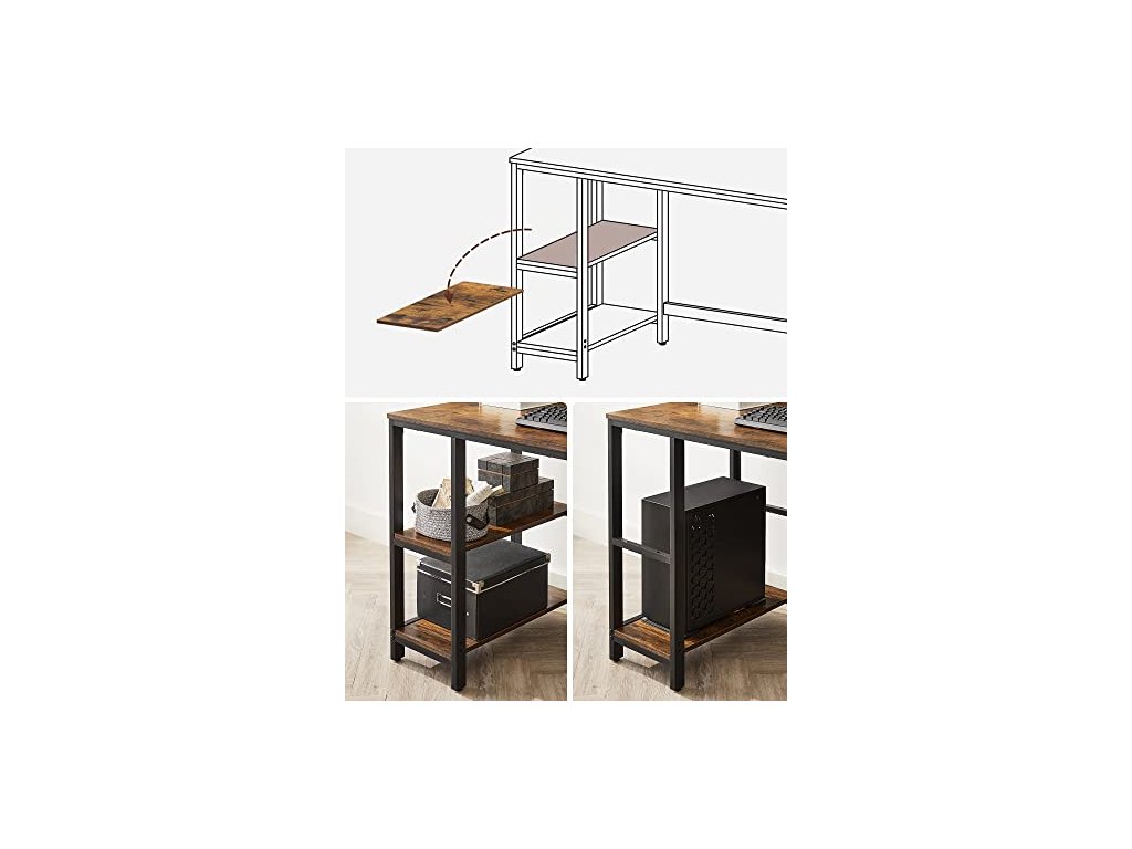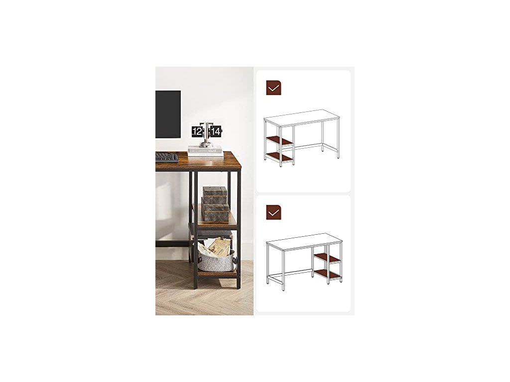 Psací stůl, 2 police, 120 x 60 x 75 cm, rustikálně hnědý a černý