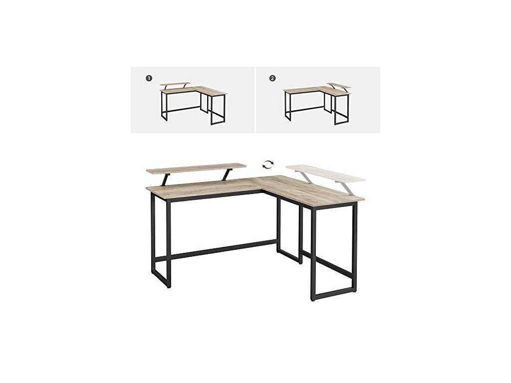 Rohový psací stůl, 140 x 130 x 91,5 cm, šedohnědý a černý