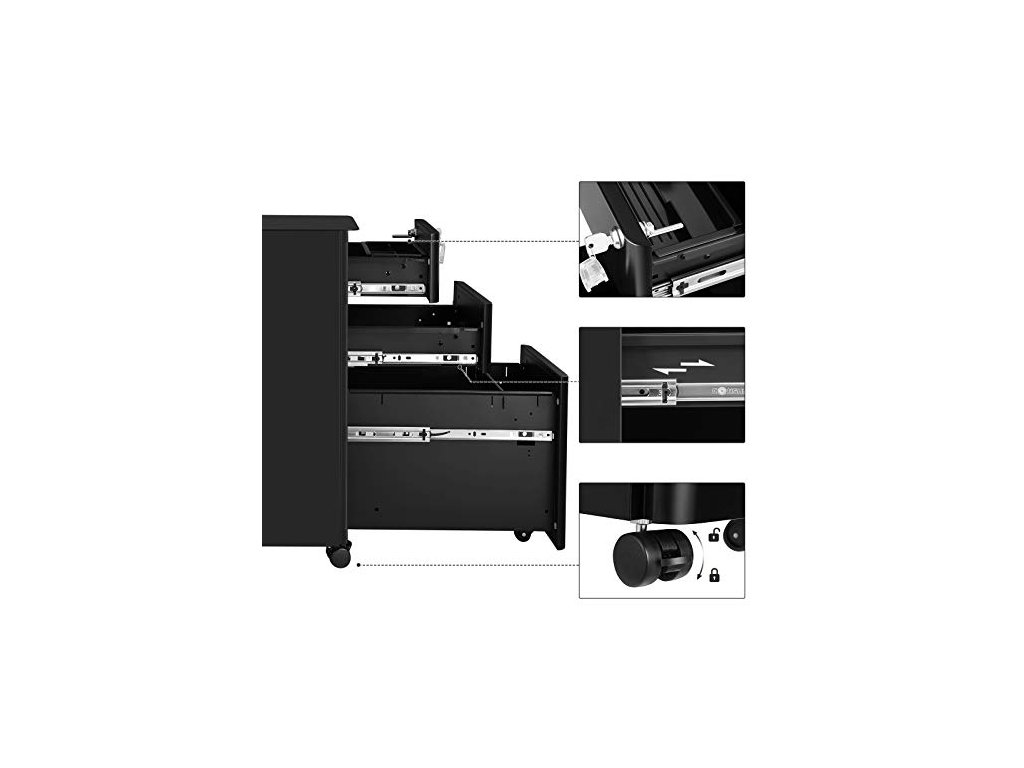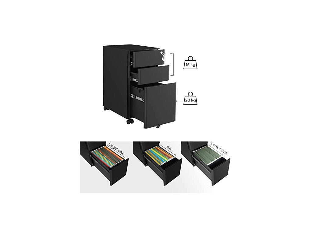 Pojízdná kartotéka se 3 zásuvkami, 30 x 46 x 59,2 cm, černá