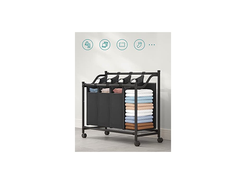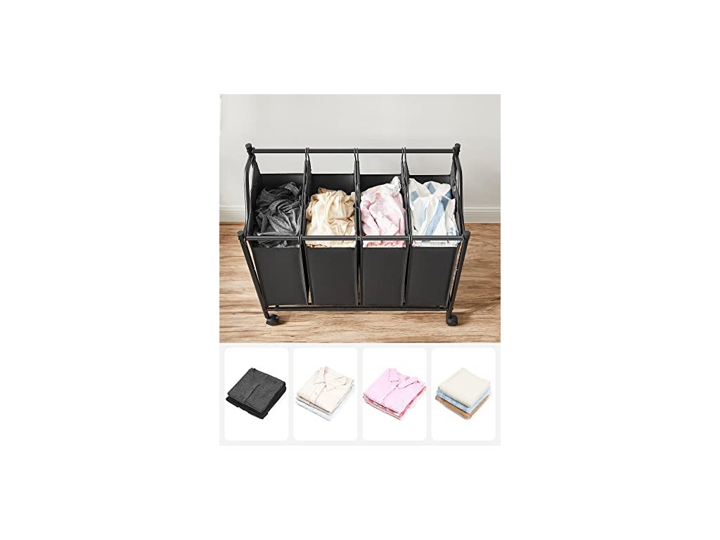 Tento koš na prádlo se 4 samostatnými pracími sáčky (objem 35 l každý) udržuje vaše prádlo roztříděné podle barvy nebo typu a připravené k odnesení k pračce, čímž zkracuje čas potřebný na třídění a usnadňuje vám práci při praní.